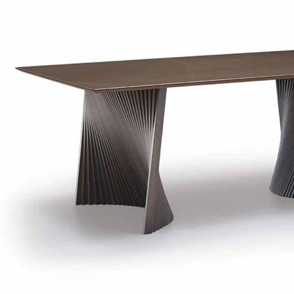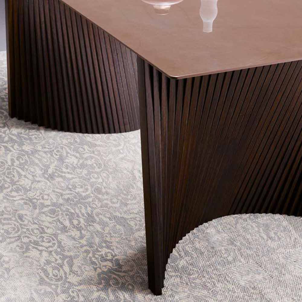Masă pentru sufragerie cu blat din gresie și picioare din lemn de frasin, produs de lux Made in Italy.