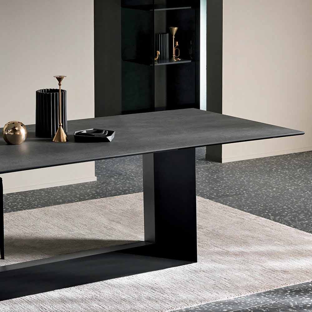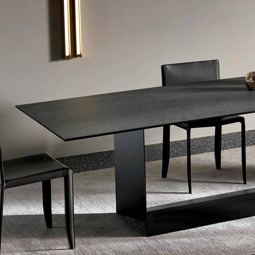 Masă de lux în ceramică mată antracit mat și ceramică din metal negru din grafit, realizată în Italia.