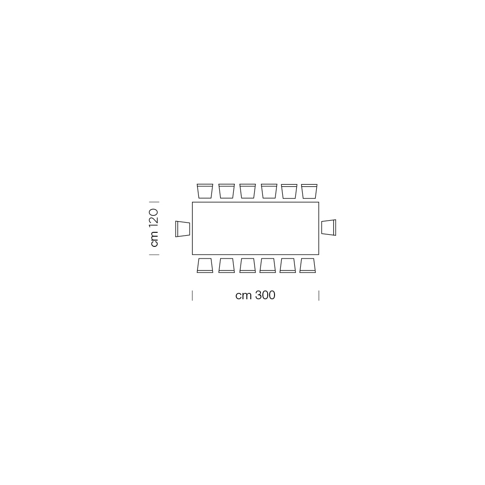 - L 300 x D 120 x H 73,5 cm (14 locuri).