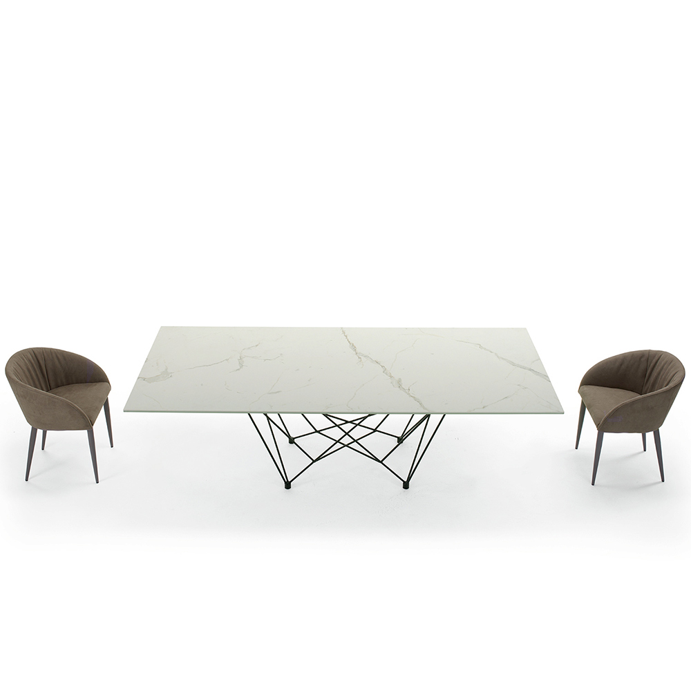Masa dreptunghiulara Ezzellino este o masa moderna si eleganta; conturată prin fuziunea stilurilor, geometriilor și materialelor, va fi perfectă pentru a vă amenaja toate mediile.