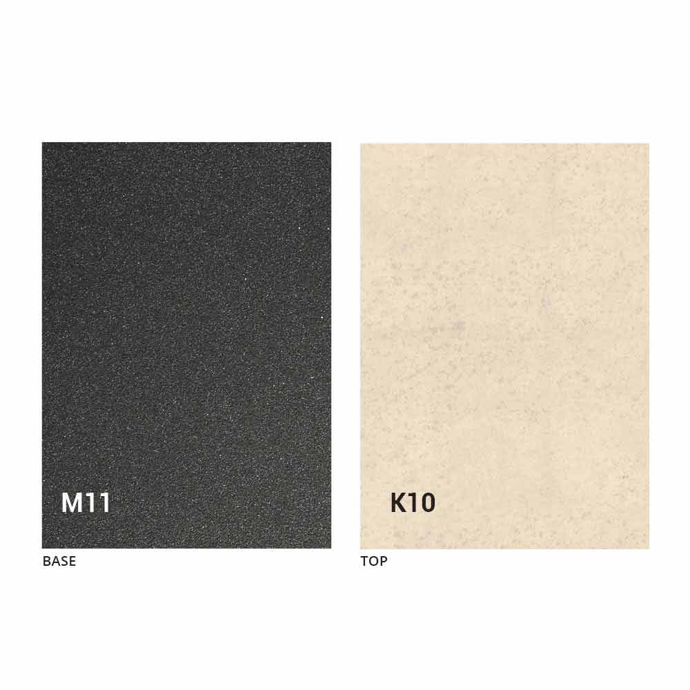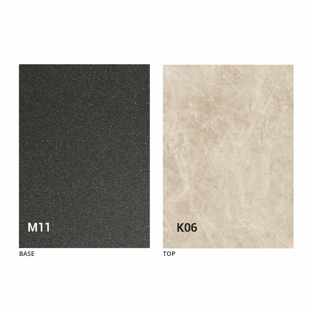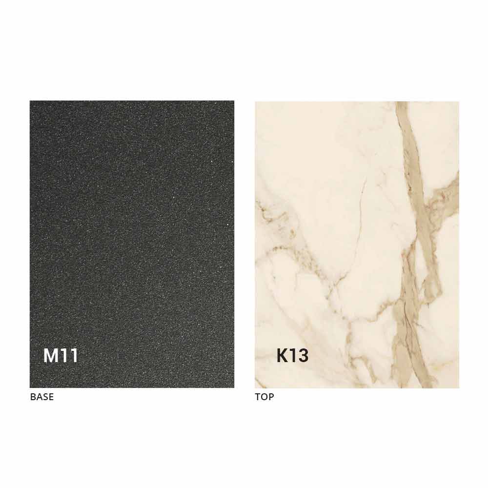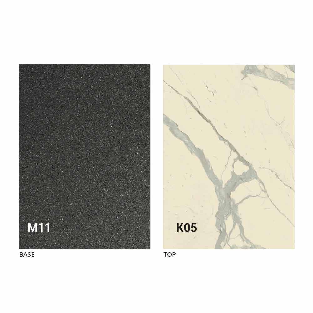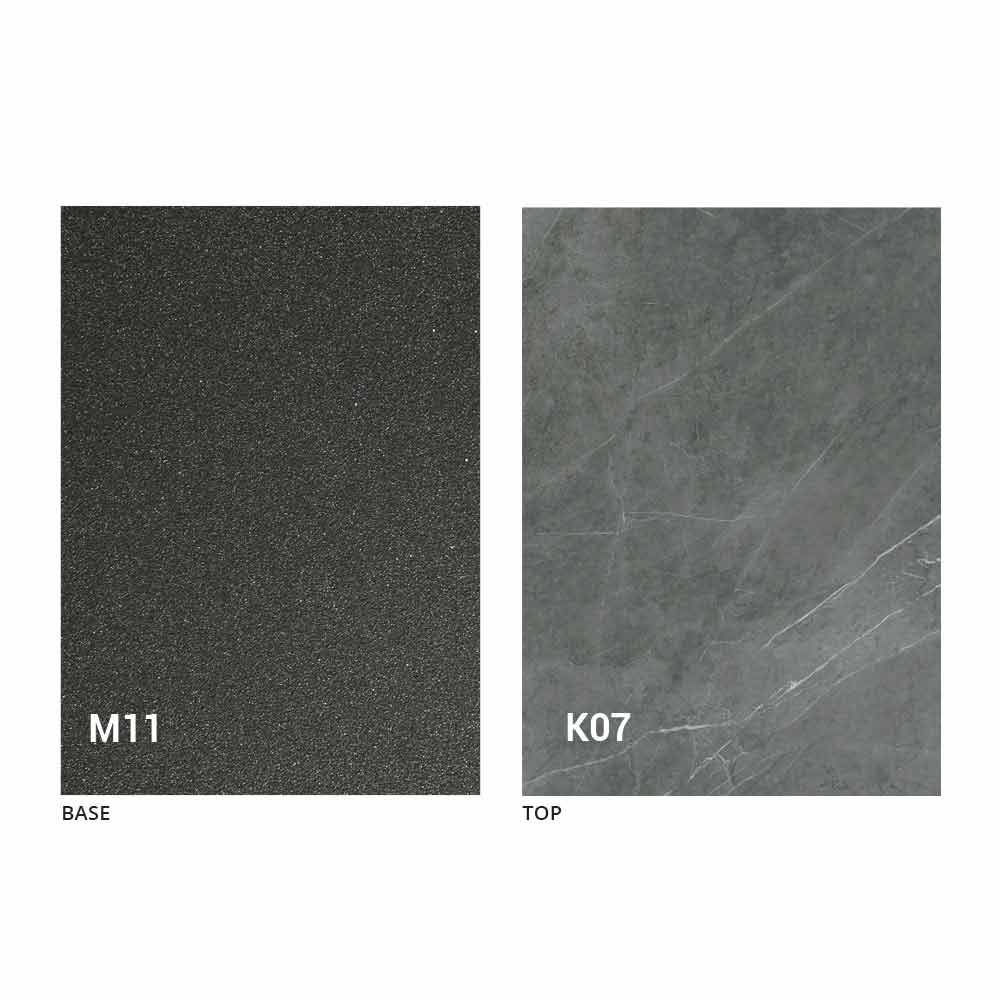 un blat din panou MDF cu ceramică laminată la suprafață, disponibil în diverse finisaje, și o