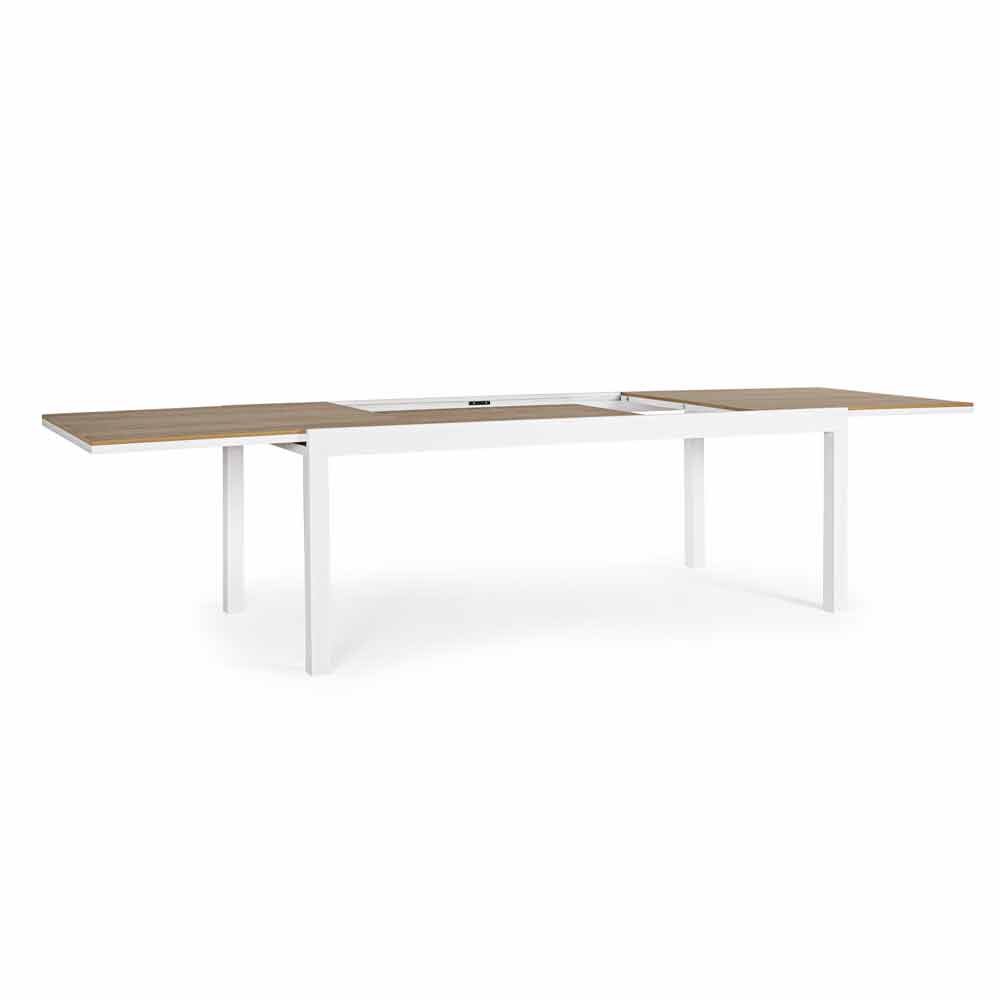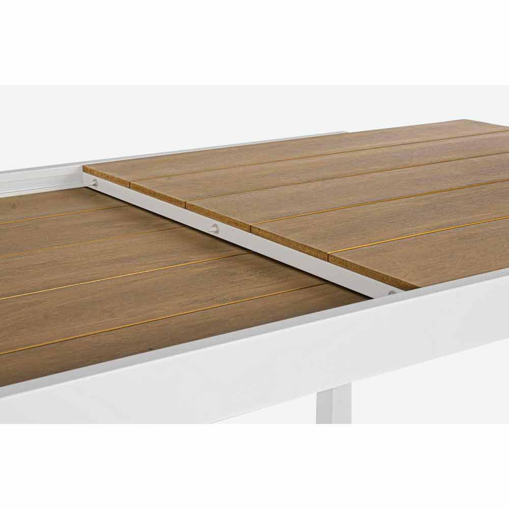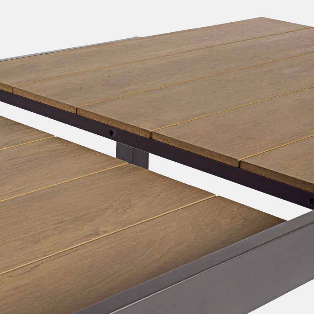 Blat din poliwood (material compozit cu aspect similar cu lemnul) 90% polistiren 10% sbs culoare tec. Extensie retractabilă. Șuruburi din oțel zincat.