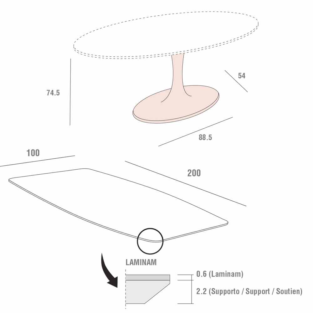NB : blatul și baza mesei sunt disponibile într-o gamă largă de materiale și finisaje diferite.