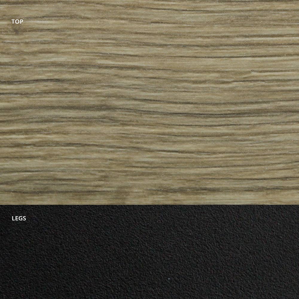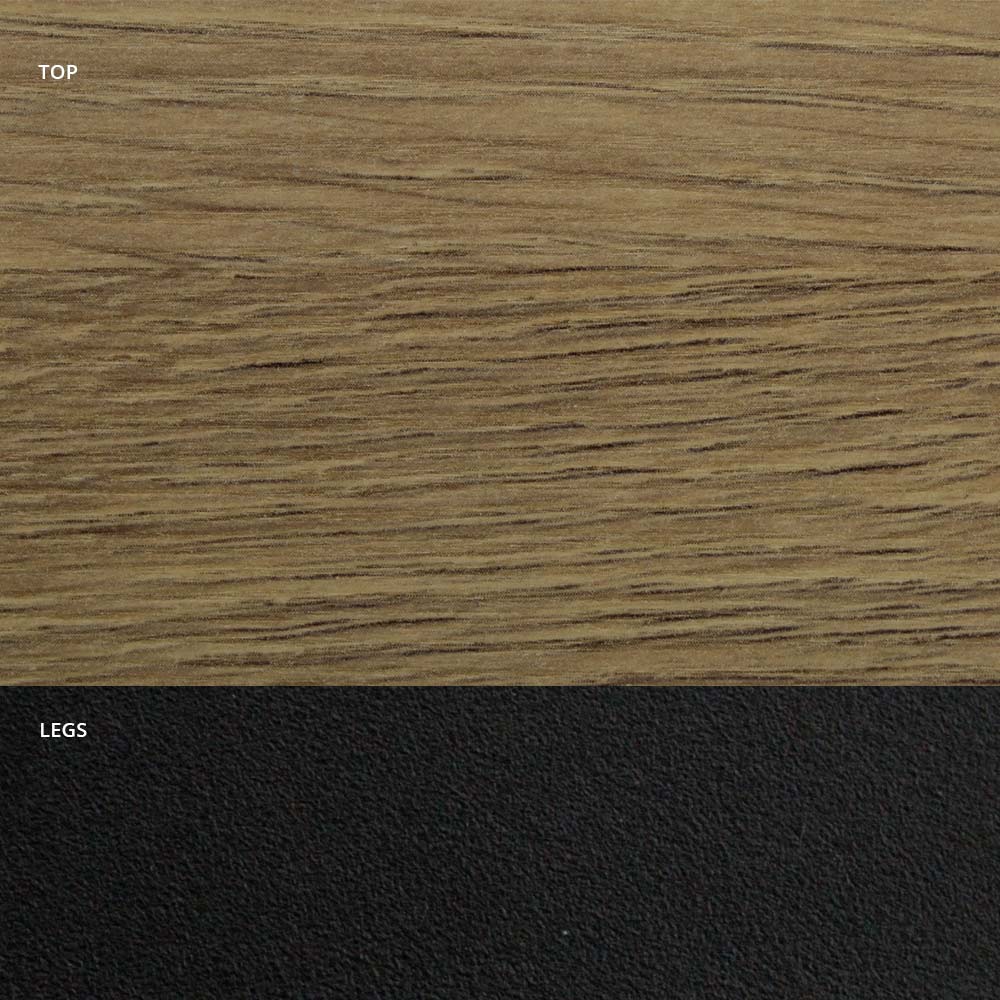 Masa de sufragerie in forma de butoi din laminat HPL cu efect de lemn si otel Made in Italy.