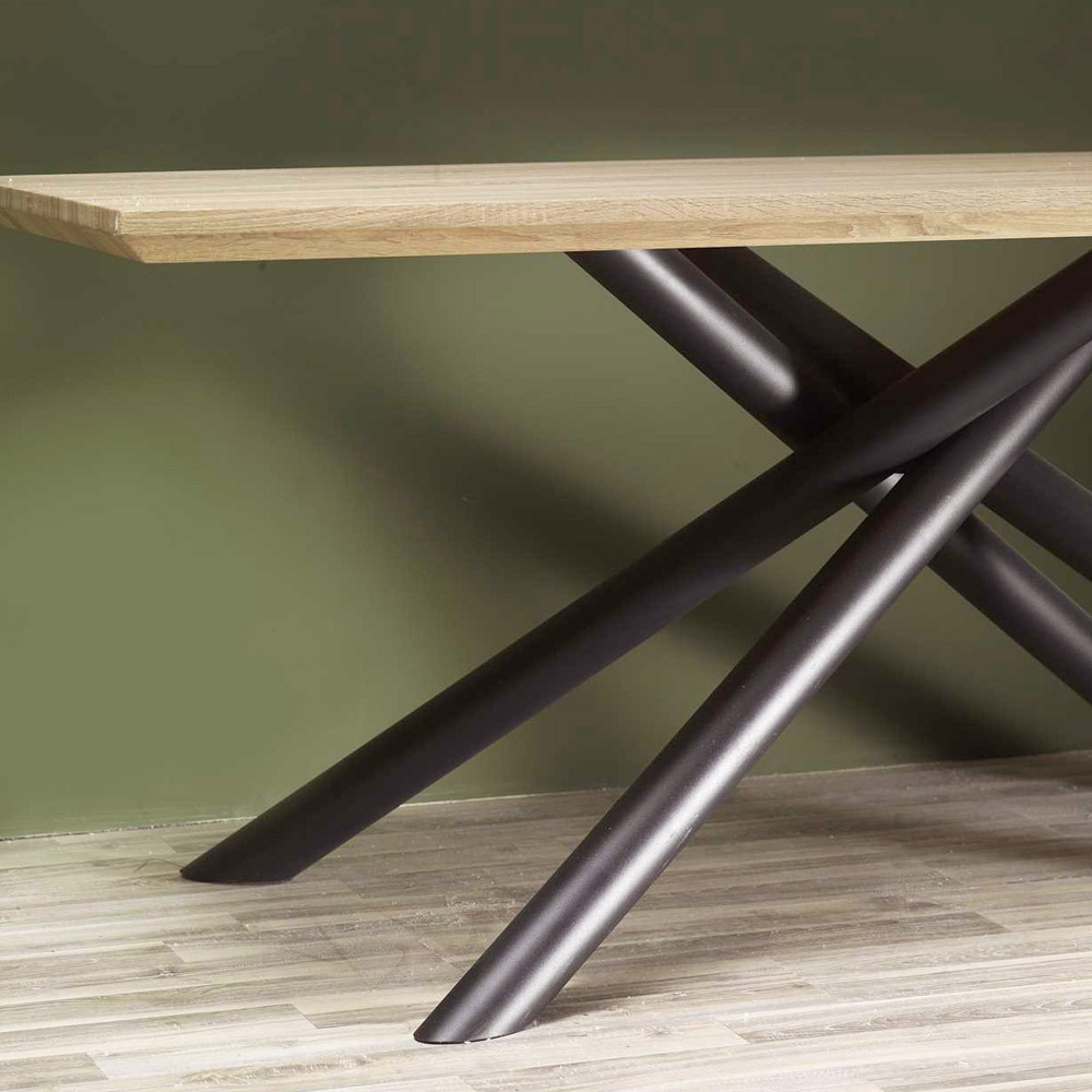 Blatul din MDF cu finisaj cu efect de lemn natural adaugă căldură și caracter mobilierului, creând un contrast vizual armonios cu metalul închis la culoare. Suprafața netedă și spațioasă oferă spațiul ideal pentru a primi familia și oaspeții , adaptându-se perfect oricărui decor, de la sufragerie la livingul modern , până la spații contract , cum ar fi restaurante sau birouri.