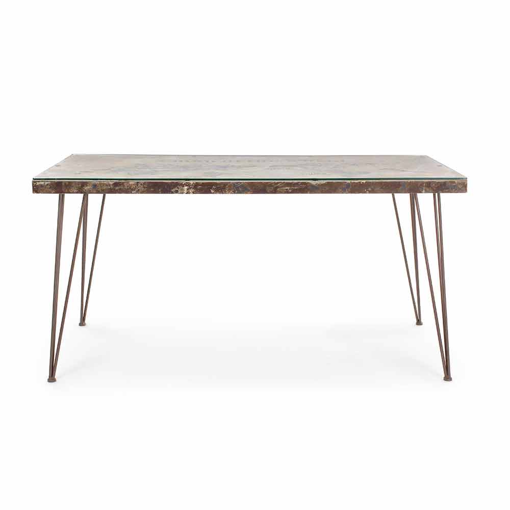 Masă de luat masa în stil industrial cu blat în MDF și sticlă Homemotion - Brazilia