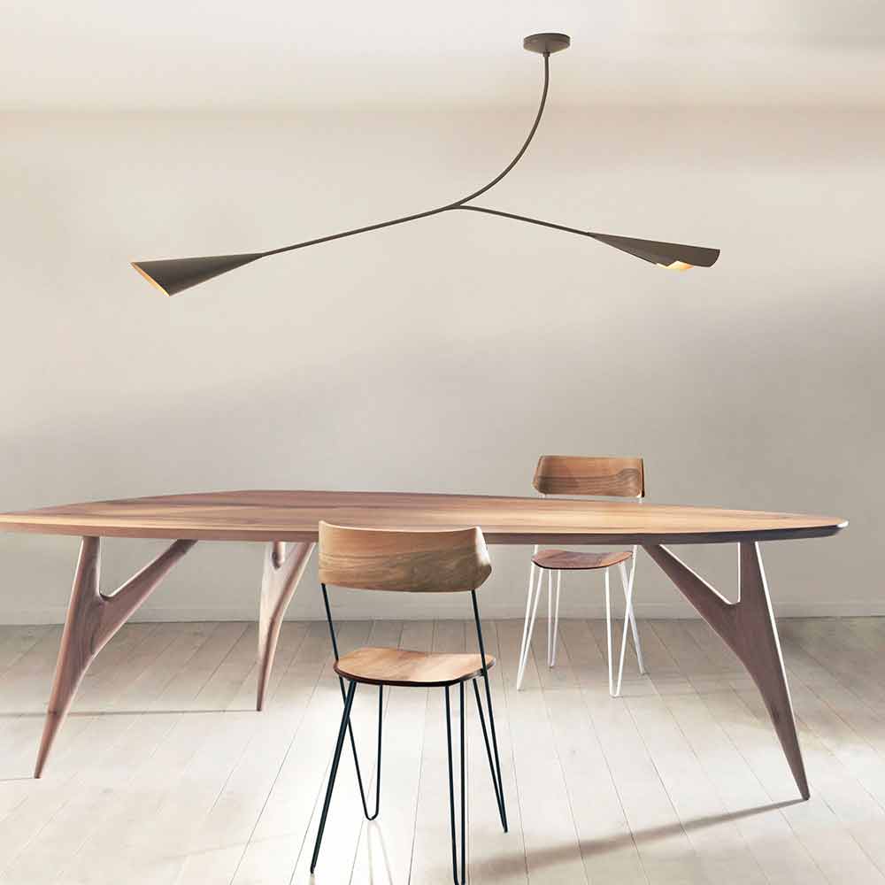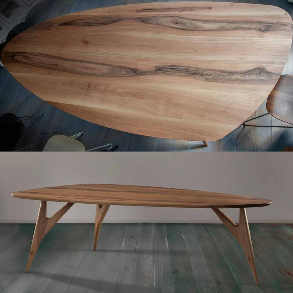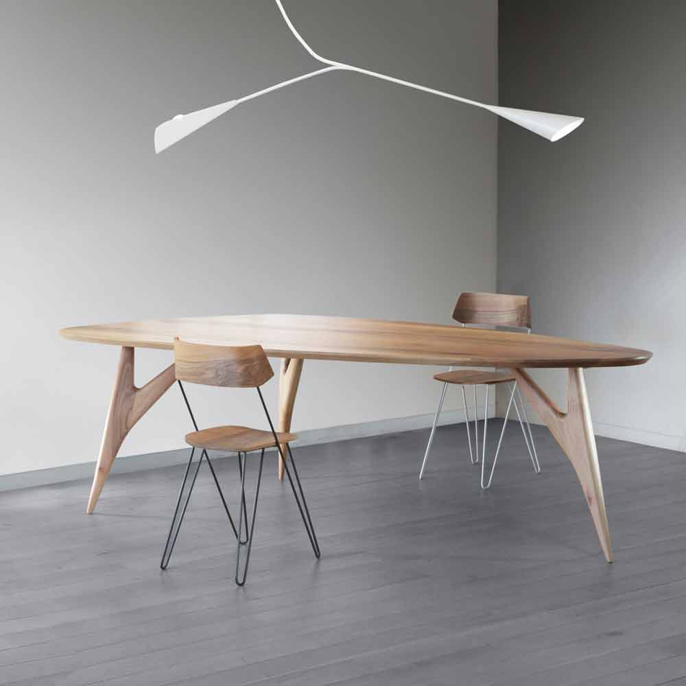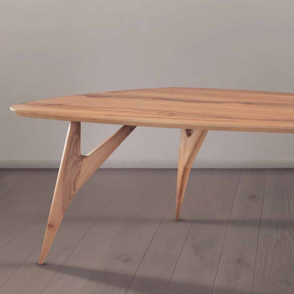Prin forma particulară a celor trei picioare și bifurcația lor originală, această masă transmite o senzație de ușurință și, împreună cu forma moale a velei a vârfului, creează o atmosferă capabilă să cucerească orice spațiu. Astfel s-a născut o soluție de mobilier unică, ideală pentru cei care caută un stil creativ care să nu treacă neobservat în interiorul camerei, reușind să completeze mobilierul cu atingerea sa capricioasă și creând o armonie perfectă cu elementele care îl înconjoară.