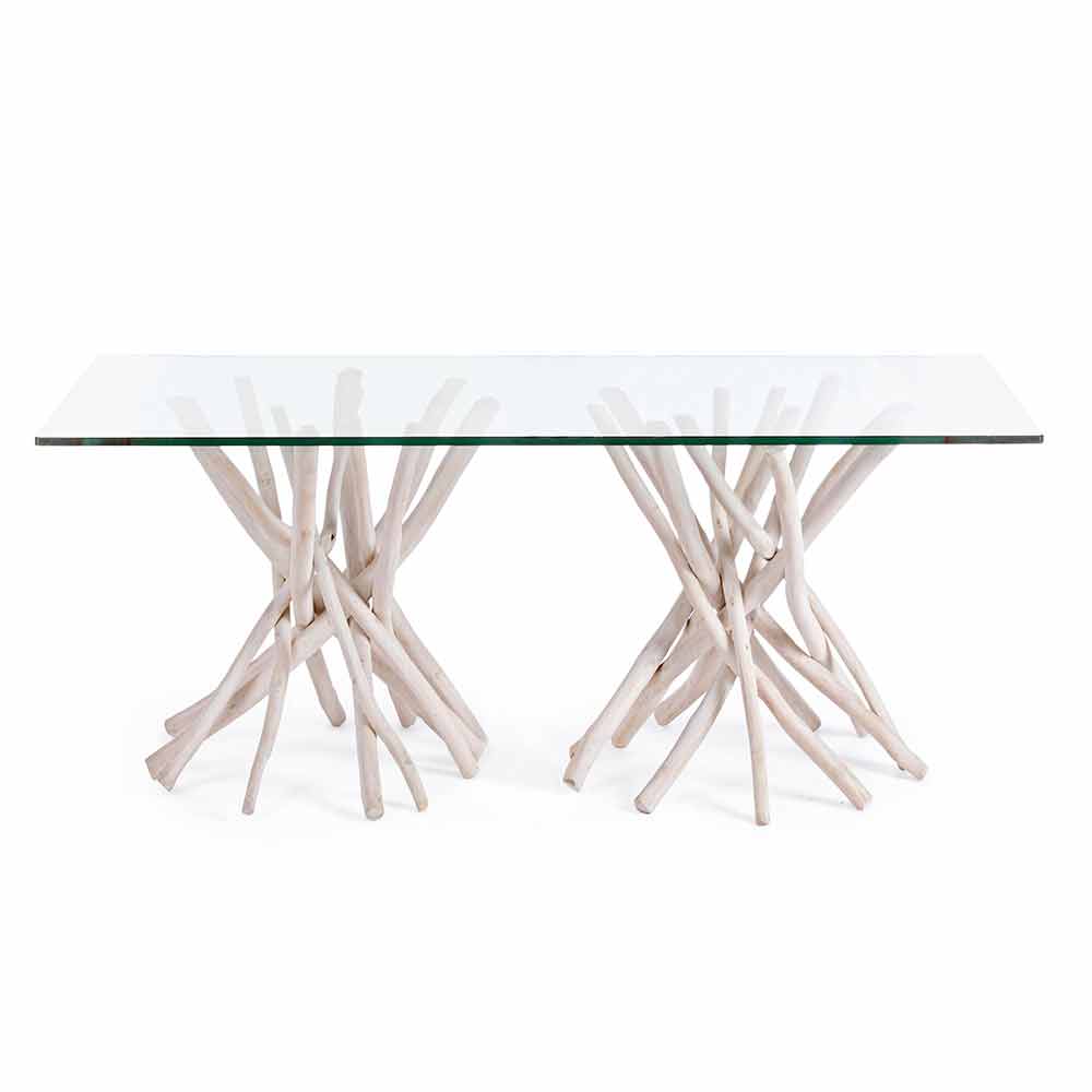 Masă de masă design din sticlă și Teak decolorat Homemotion - Franța