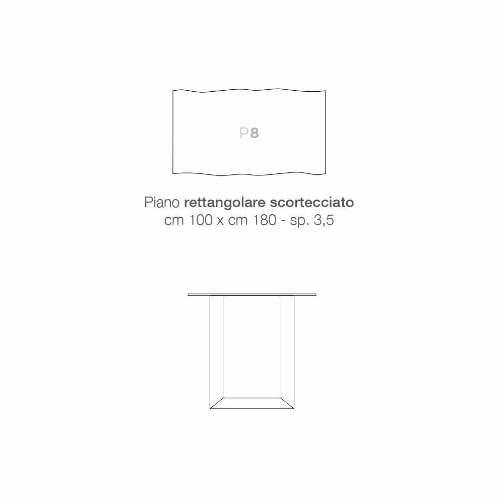 Flora este o masă uimitoare, fixă, realizată în Italia, cu o suprafață de particule din lemn masiv furată pe părțile londonei (grosimi de 35mm) și o baza metalica pictata .