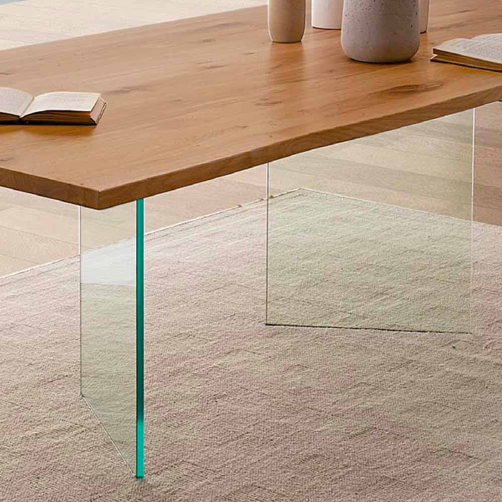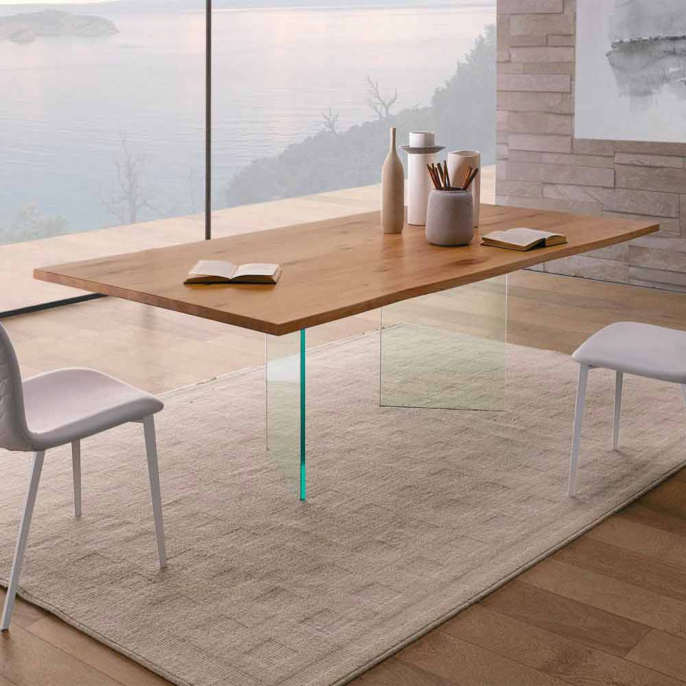Masă modernă pentru sufragerie din sticlă și lemn, produs Made in Italy de înaltă calitate.