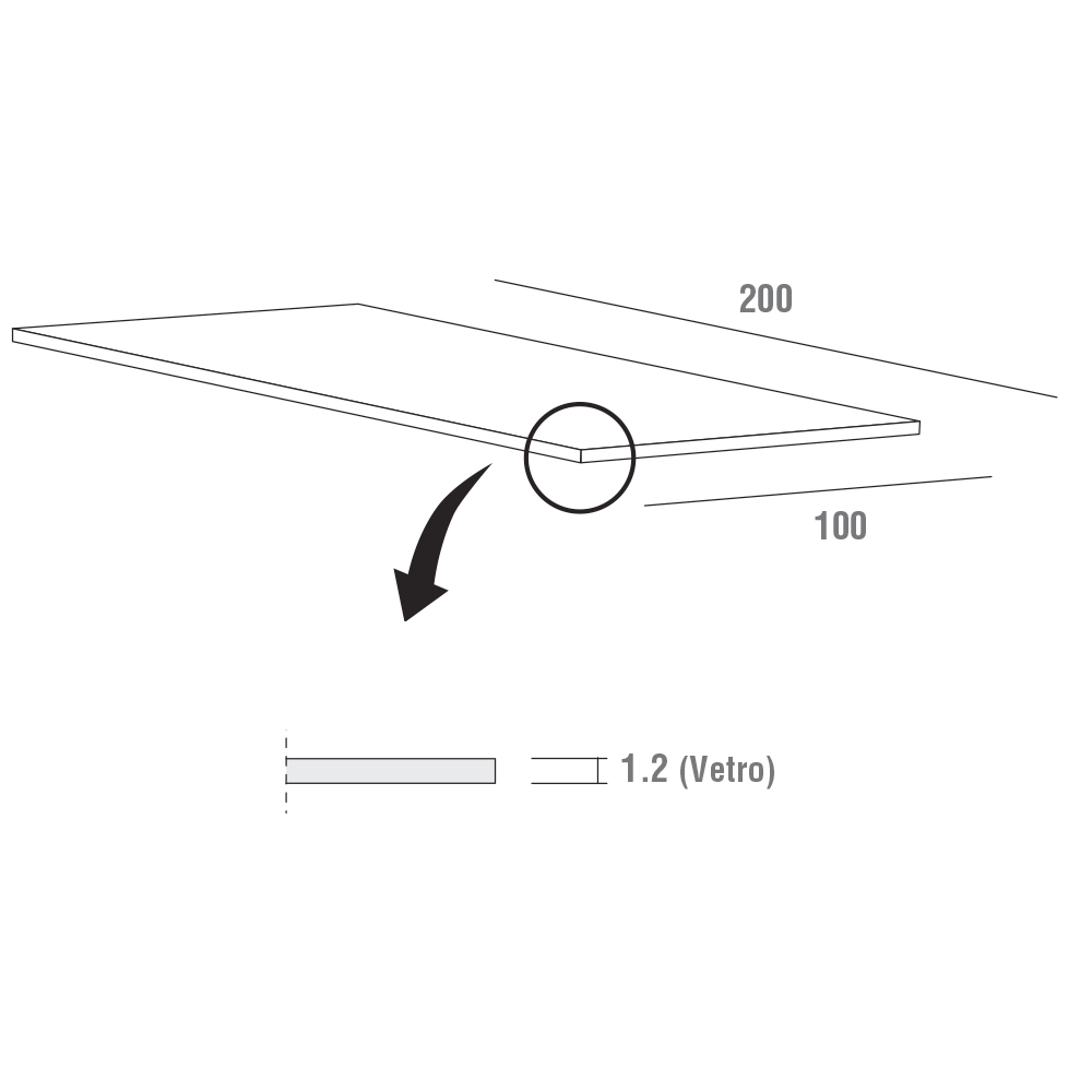 - L 200 x A 100 x H 76cm.