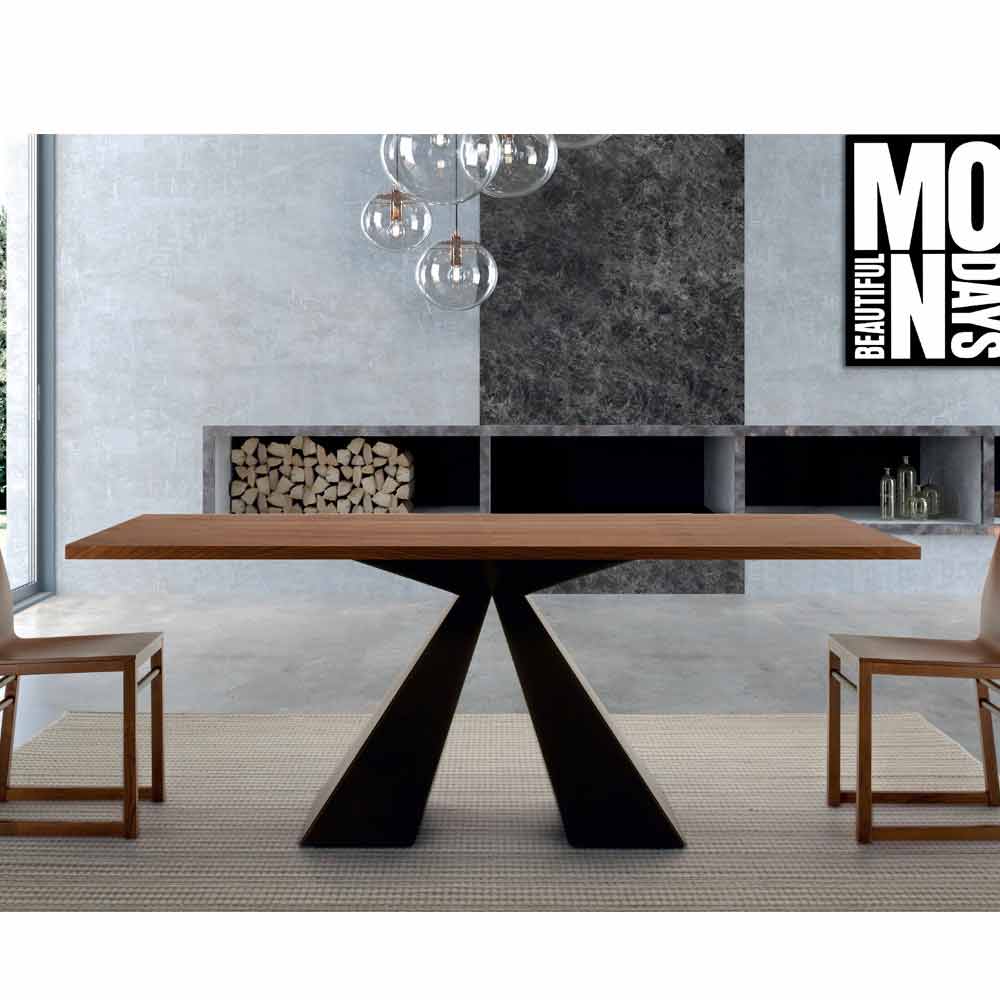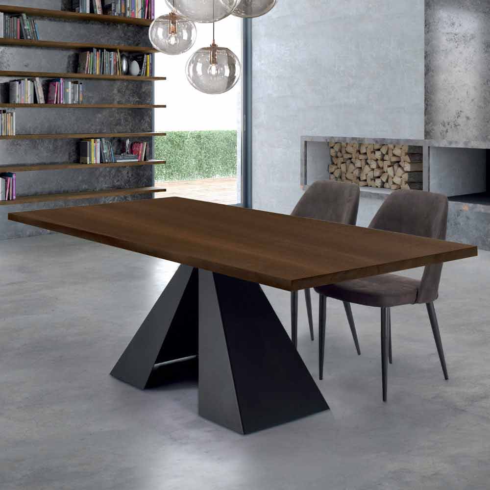 Masa de sufragerie cu blat furniruit si baza din otel Made in Italy, de inalta calitate.