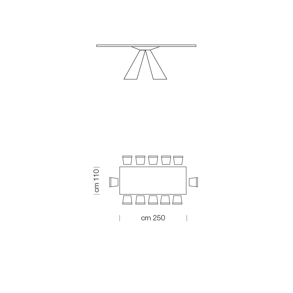 - L 250 x D 110 x H 75,5 cm (12 locuri).