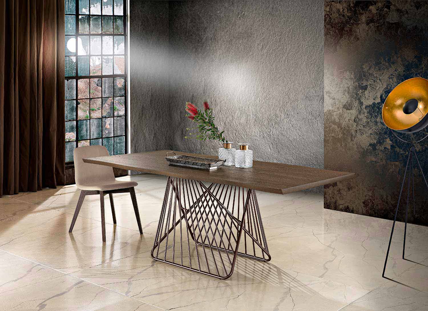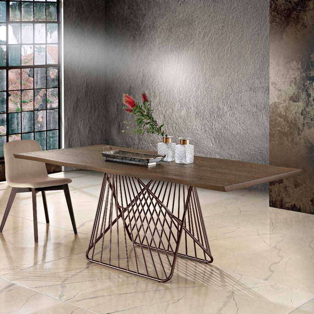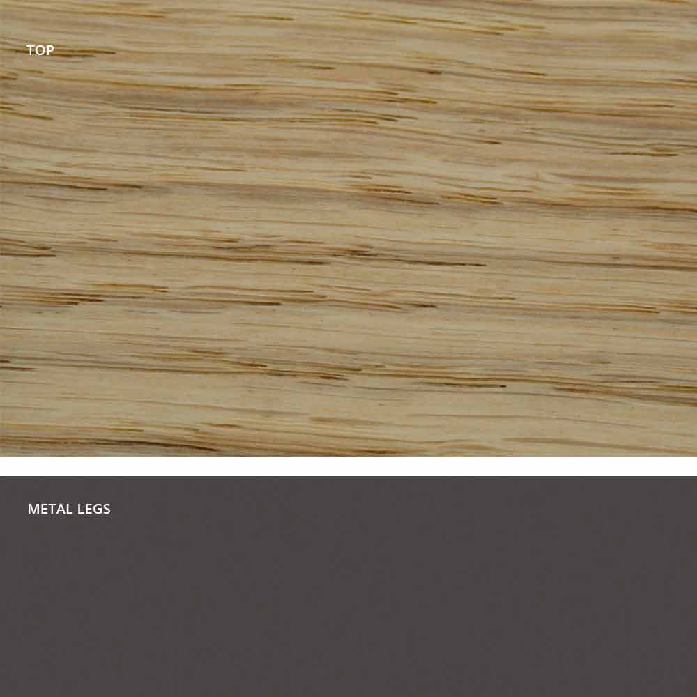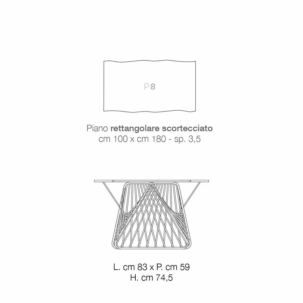 Mitia este o masă fixă realizată în Italia cu o bază metalică pictată și o suprafață de particule din lemn masiv (grosime de 35mm) furată pe laturile lungi.