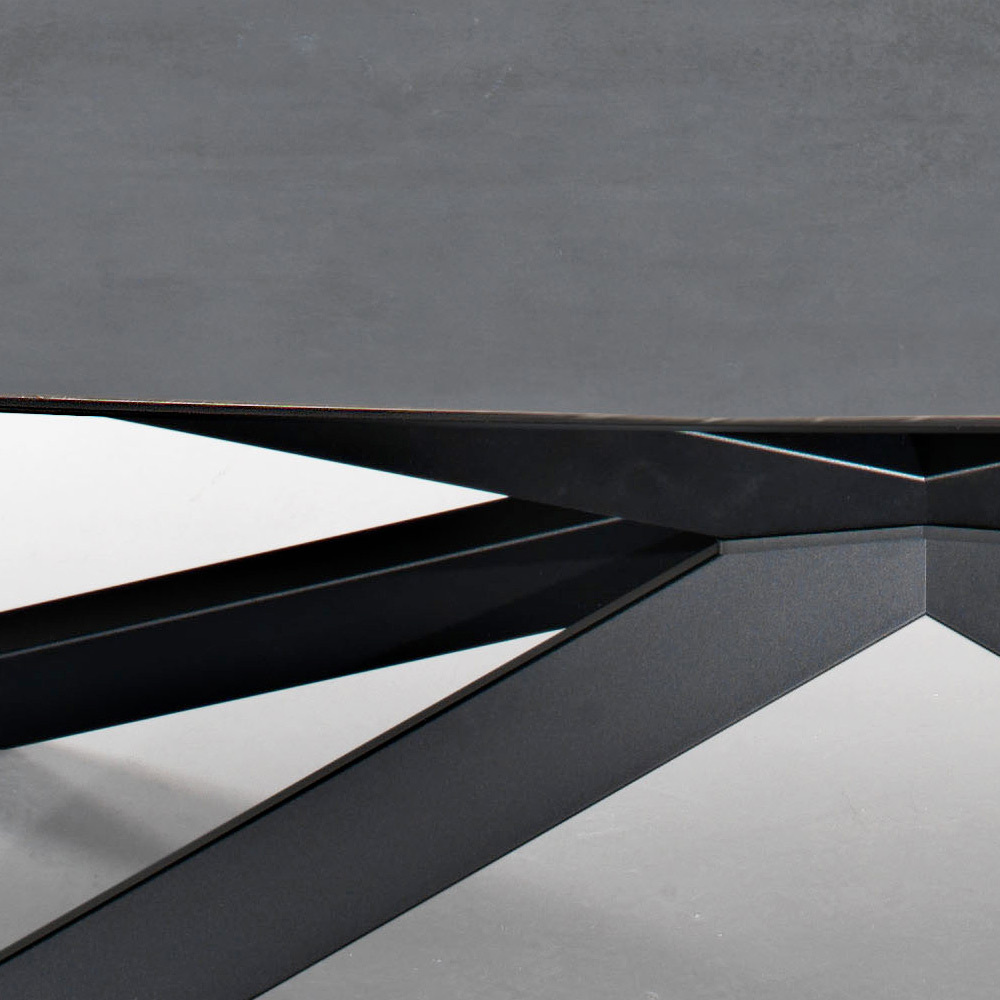 Masa de sufragerie cu blat in forma de butoi din laminat HPL cu efect de piatra Made in Italy.