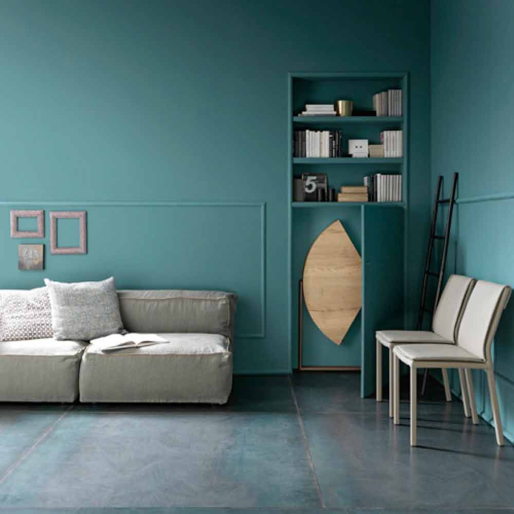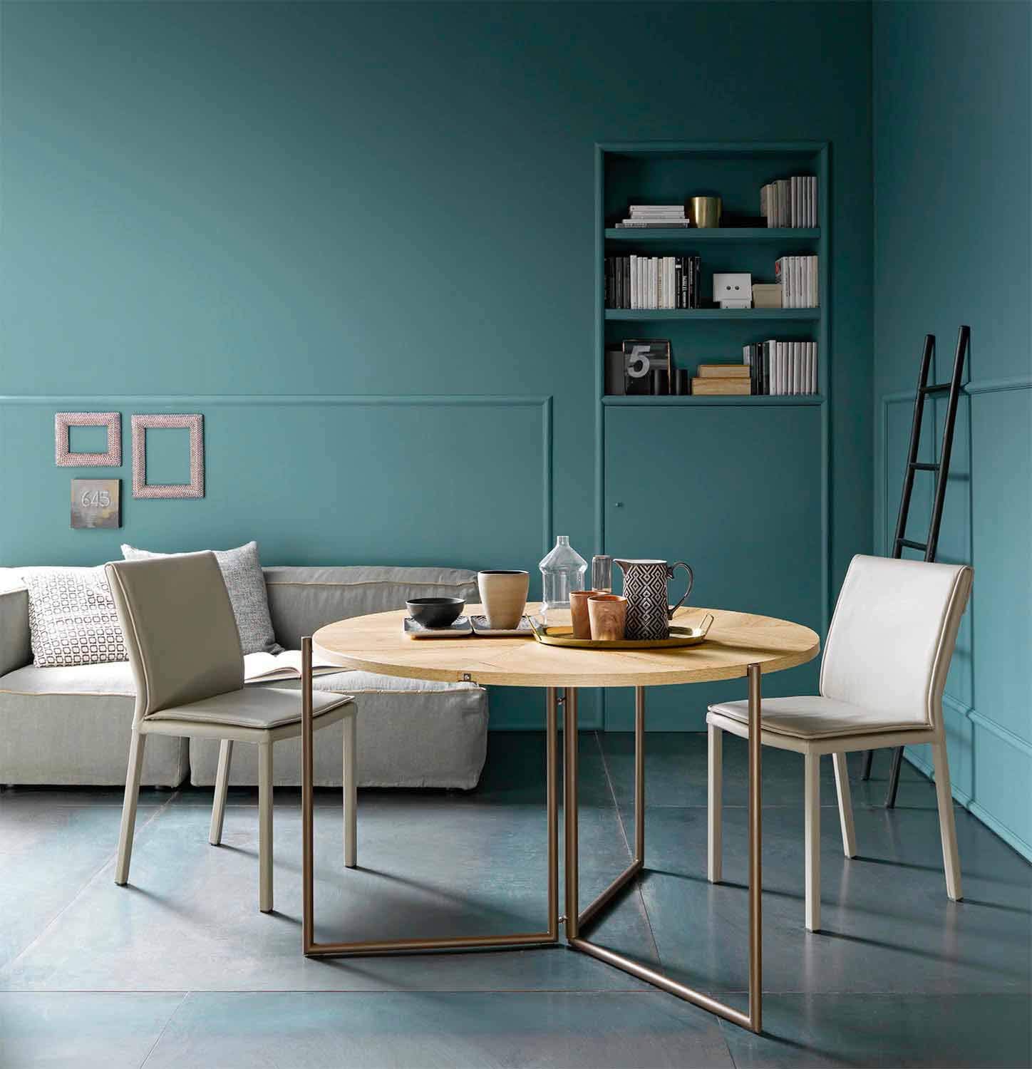 Masa de sufragerie plianta de design cu blat din lemn melaminat si baza metalica Made in Italy.