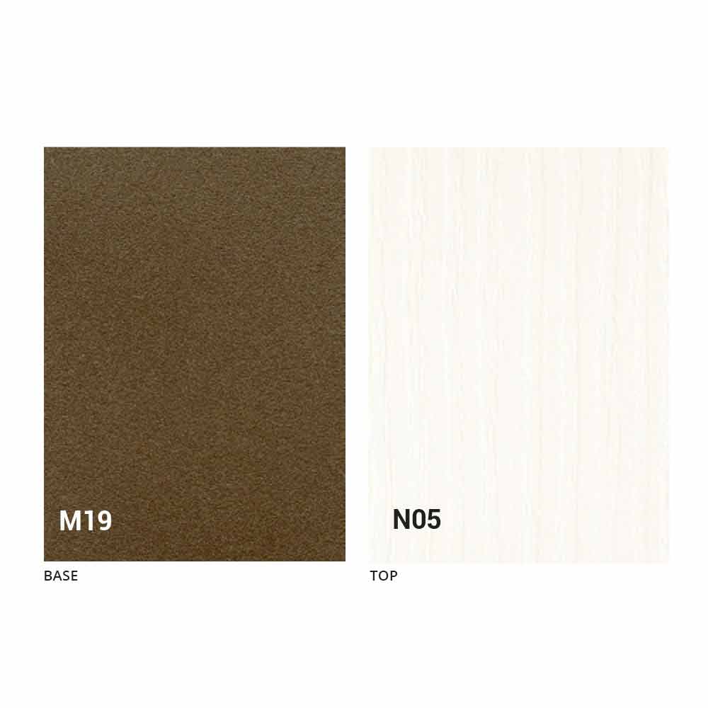 bază metalică vopsită cu bronz în relief. Disponibil în diferite finisaje:- blat din lemn melaminat alb matrice,