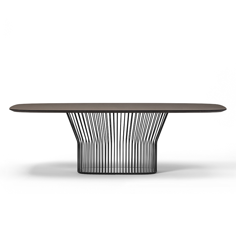 stil dinamic si compusa din multe raze de diferite latimi care se pliaza in exterior in varf si apoi se deschid pentru a sustine blatul. Dimensiunile propuse impreuna cu diferitele finisaje pentru blat permit acestei minunate piese de mobilier sa se dovedeasca a fi deosebit de versatila si deci capabila sa completeze orice spatiu, cucerind centrul atentiei prin sufletul sau contemporan si gustul rafinat.