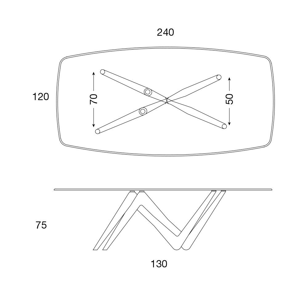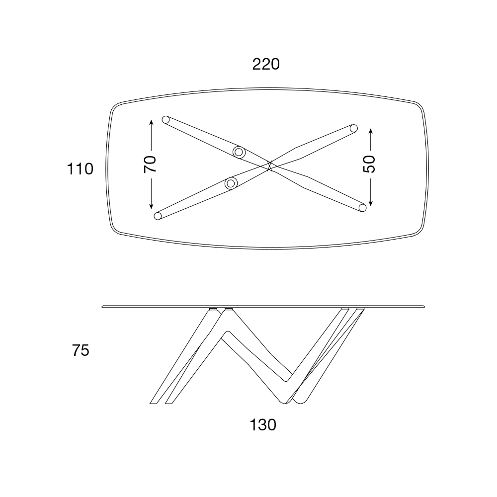 structura se împletește pentru a susține ușor blatul, dându-i un aspect