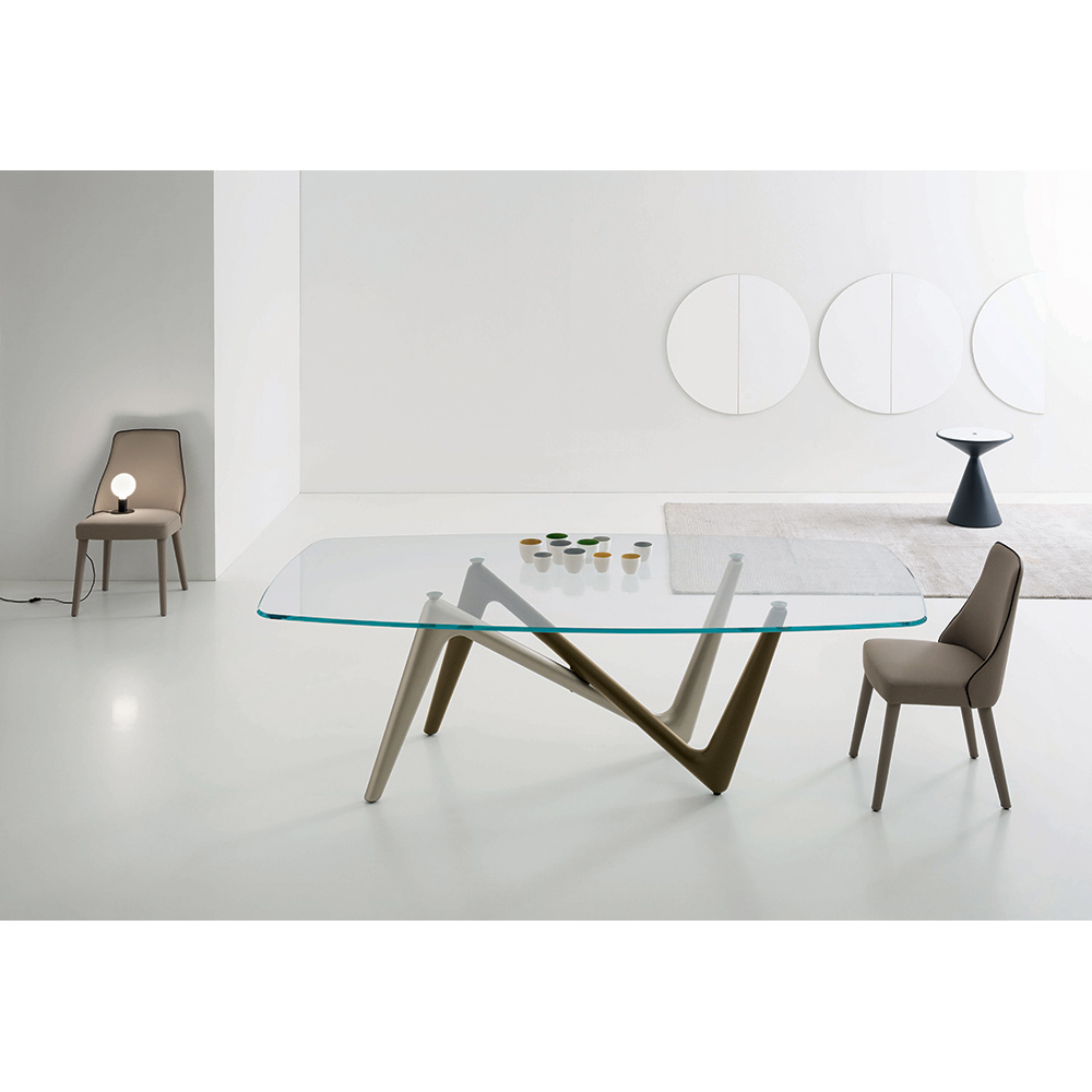 Masa de sufragerie din sticla transparenta si baza din poliuretan, 2 dimensiuni fabricata in Italia.