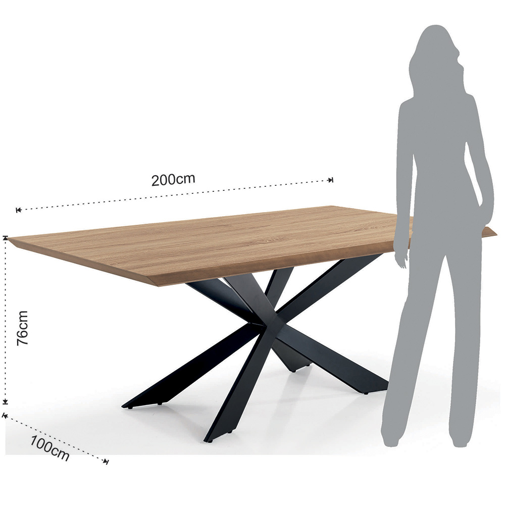 Masa de sufragerie din mdf cu finisaj stejar si metal vopsit negru.