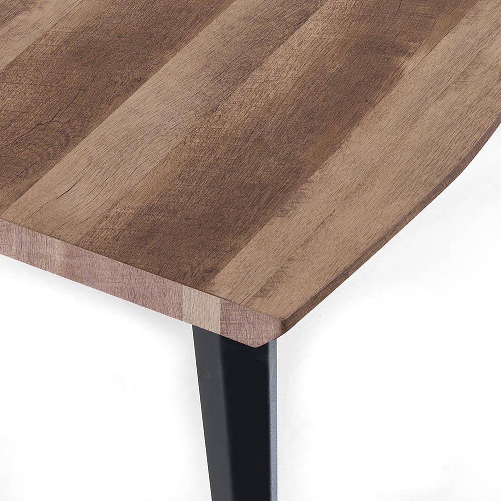 Masa de sufragerie cu blat din mdf imbracat in melaminat cu finisaj scandura stejar (grosime 4cm) si picioare cu picior reglabil din otel vopsit negru mat . Un complement cu un stil minimal și modern conceput pentru a mobila orice spațiu de locuit într-un mod esențial, aducând cu el funcționalitate și eleganță . Combinația de finisaje și materiale alese îmbogățește produsul cu personalitate și îi permite să asigure soliditate, stabilitate și durabilitate excelentă . Rezultatul este asadar o masa de sufragerie avangardista caracterizata printr-o versatilitate marcata de utilizare capabila sa completeze cu personalitate orice situatie casnica sau contractuala.