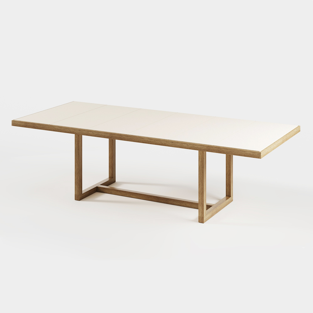 plăci de gresie care conturează blatul, dând mesei caracter și personalitate.