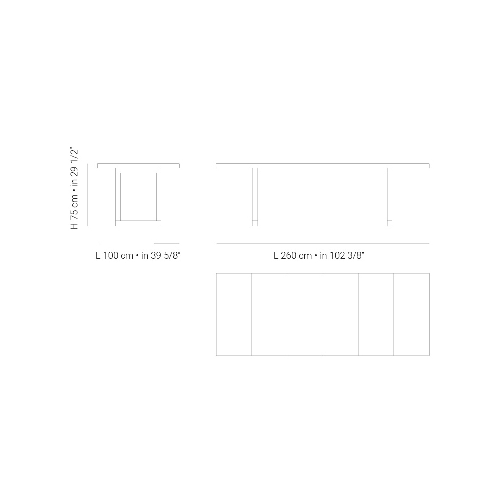 - L 260cm x A 100cm x H 75cm