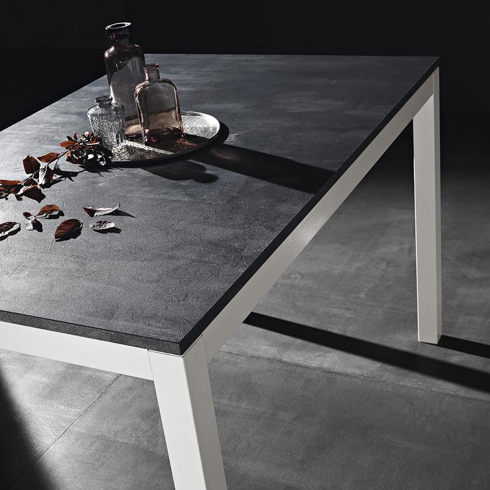 Masa de sufragerie extensibila compusa din structura si picioare din metal lacuit mat antracit RAL 7024 si blat melaminat (grosime, 22 mm), fabricat in Italia . O idee de amenajare atent concepută pentru a exprima cel mai bine tendințele actuale în domeniul mobilierului și al vieții de zi cu zi. Aspectul fundamental al designului său exclusiv este echilibrul perfect între estetică și caracter practic, care garantează un impact foarte puternic în orice context. O masă care reușește să îmbine riguros designul, modernitatea și tehnologia pentru un rezultat rafinat, elegant și cu o personalitate puternică.