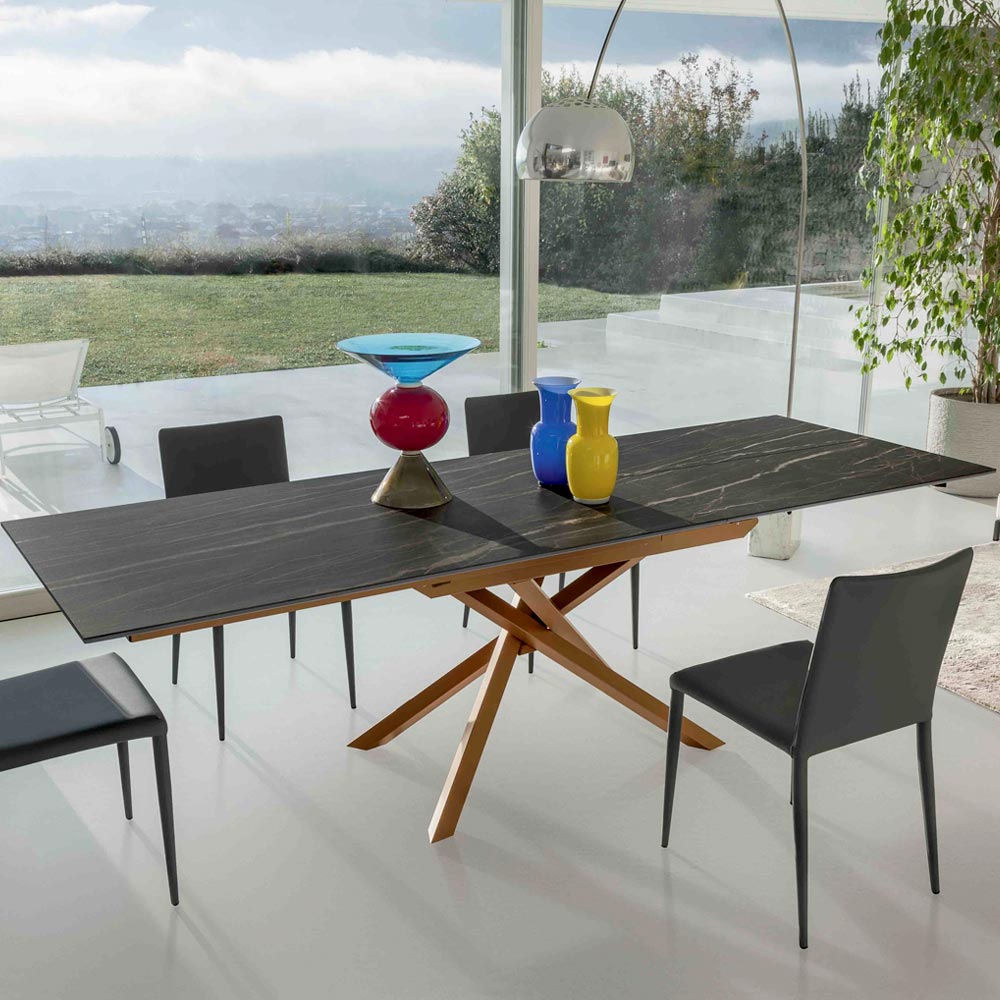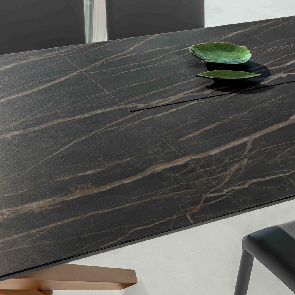 blat din ceramică matt noir desir, extensie din ceramică matt noir desir cu granulație continuă și bază metalică cu finisaj cupru în relief