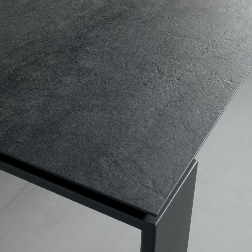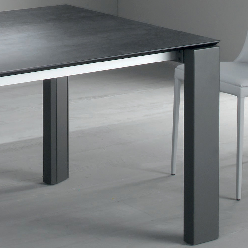 Masa de sufragerie extensibila din ceramica si baza metalica, diverse dimensiuni si finisaje fabricate in Italia.