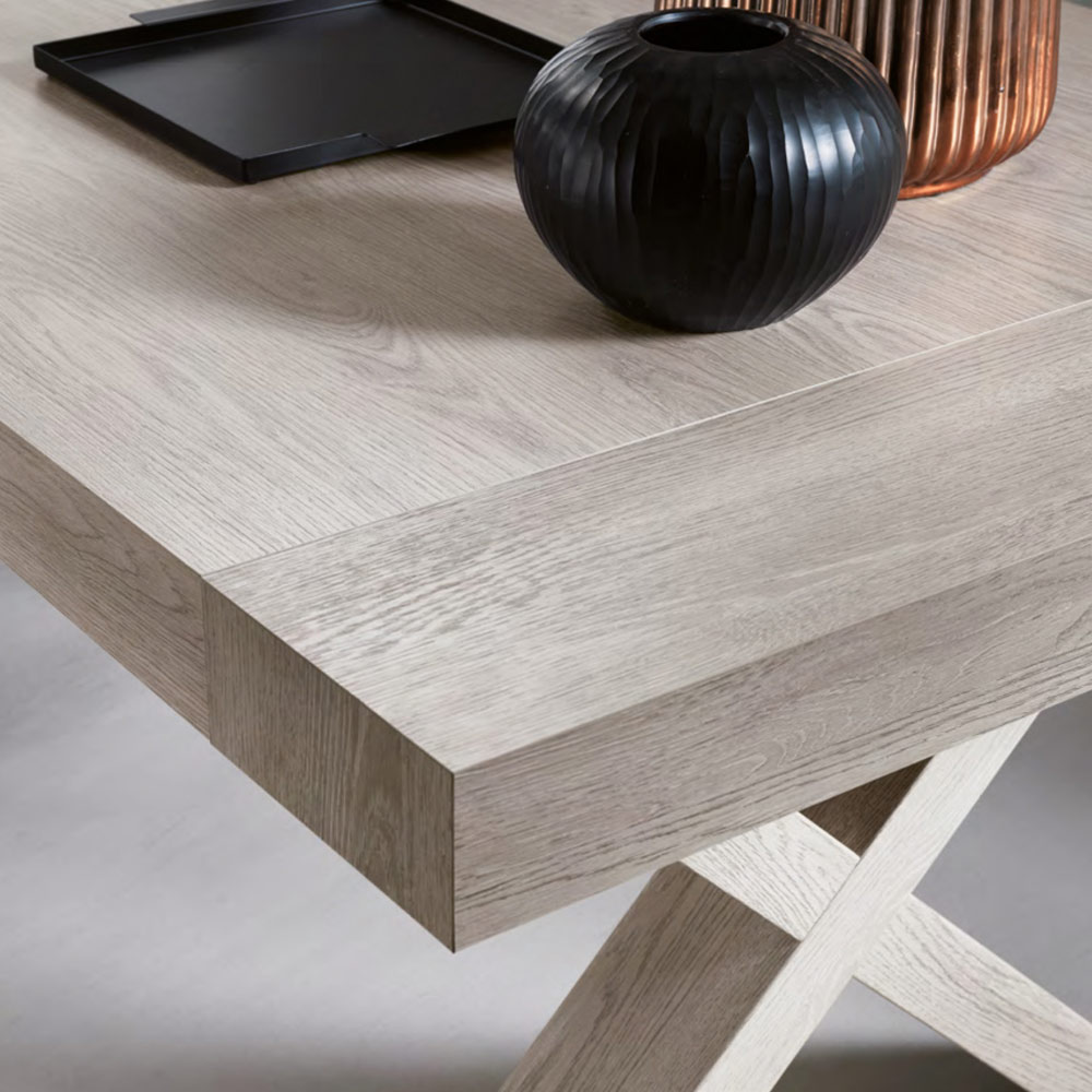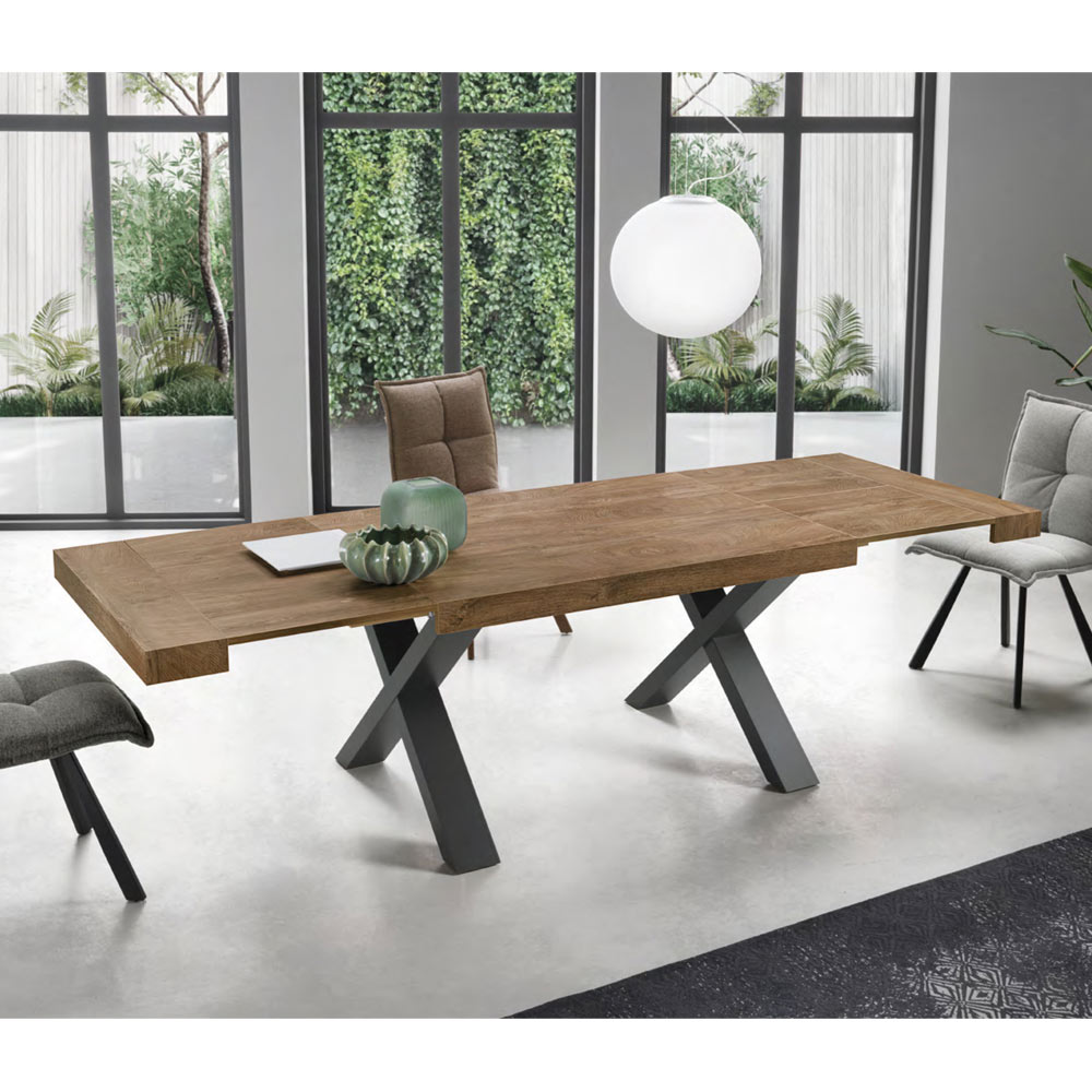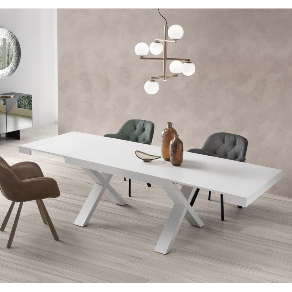 Punctul său forte este reprezentat de blatul care, datorită a două prelungiri laterale de 50 cm fiecare, atinge o lungime de 260 cm permițându-i să găzduiască până la 10 persoane. Acest aspect îl face o soluție de amenajare ideală pentru cei cărora le place să organizeze prânzuri și cine cu prietenii și nu doresc să renunțe la un strop de