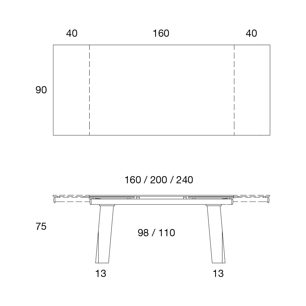 blat din sticla transparenta securizata extraclara cu doua extensii si cadru extensibil din aluminiu.