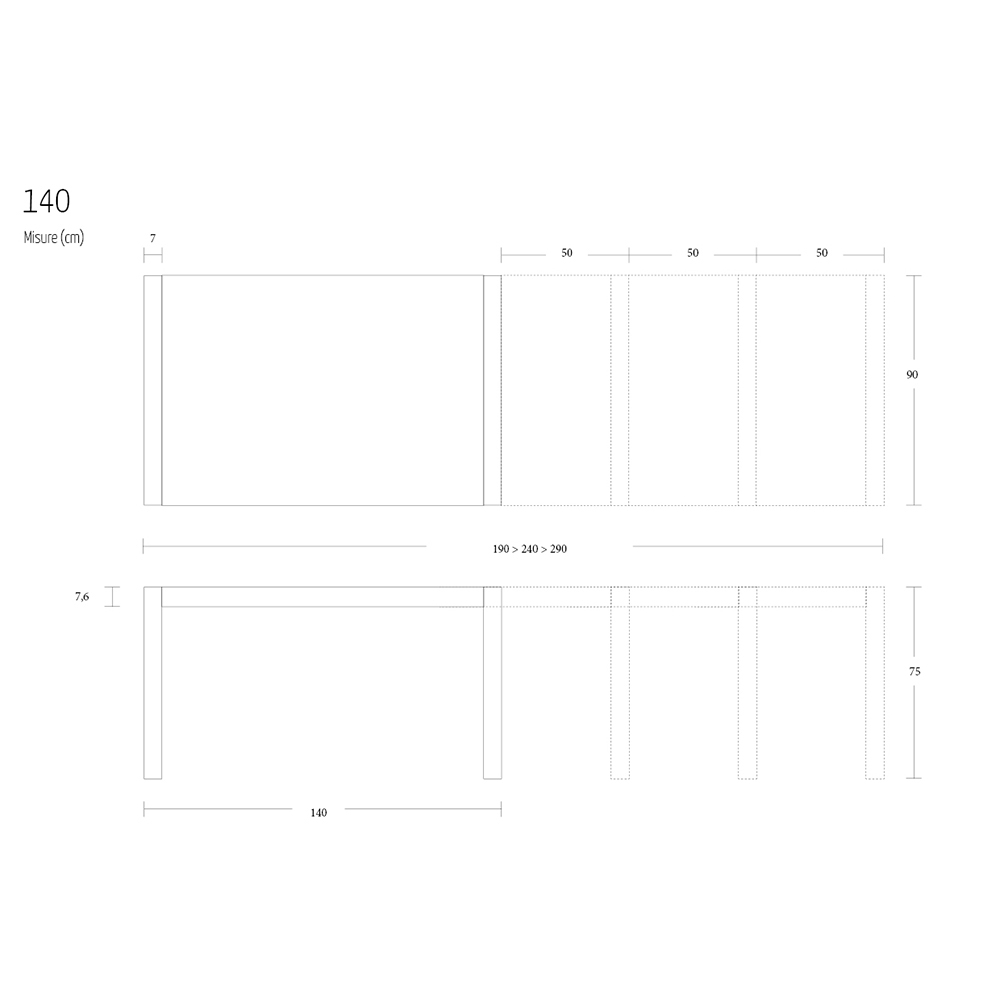 Dimensiuni disponibile:- L 140/190/240/290 x P 90 x H 75 cm - 3 foi extensibile de 50 cm;