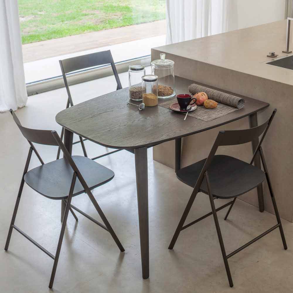 Masa de sufragerie extensibila si modelata din lemn furniruit fabricata in Italia.