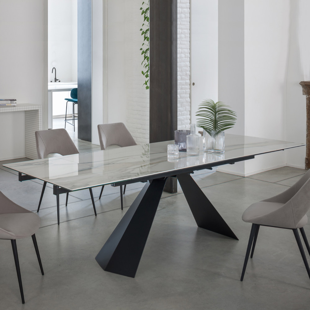 Masa de sufragerie cu blat extensibil pana la 270 cm din sticla ceramica.