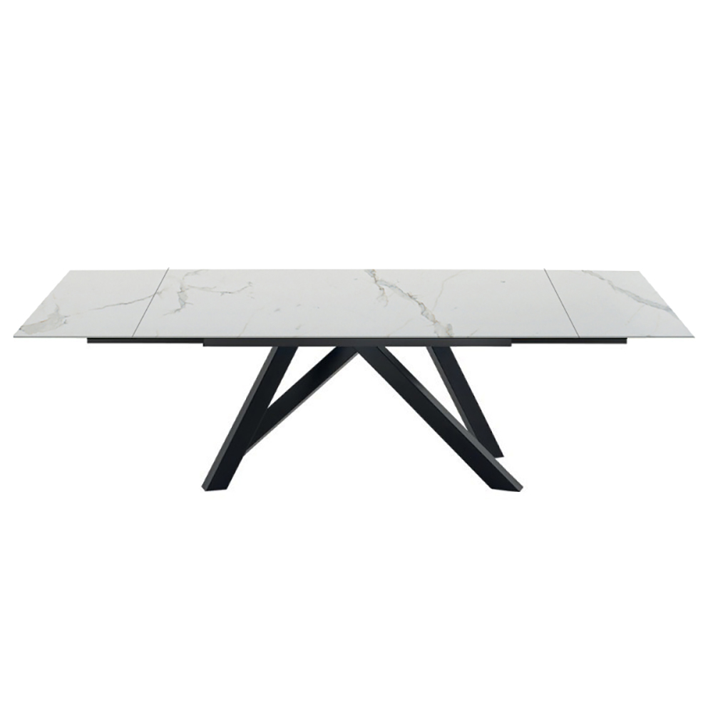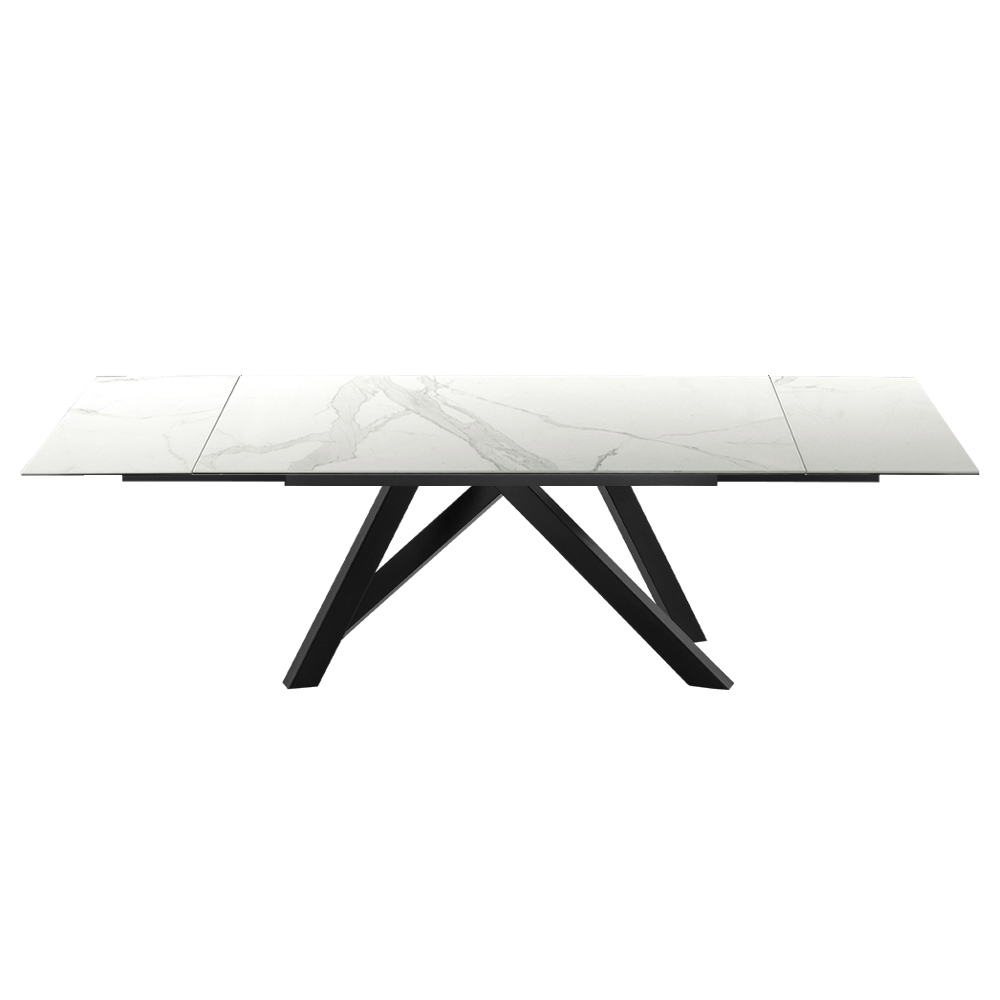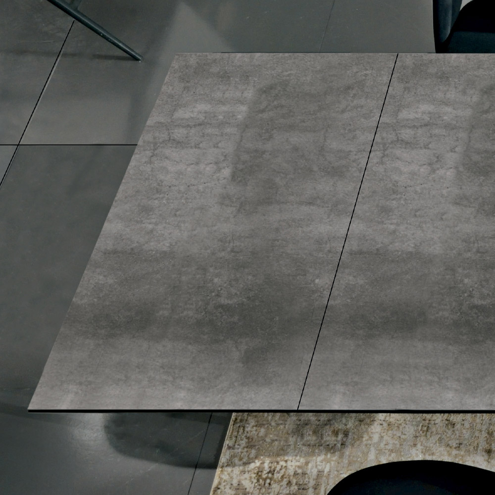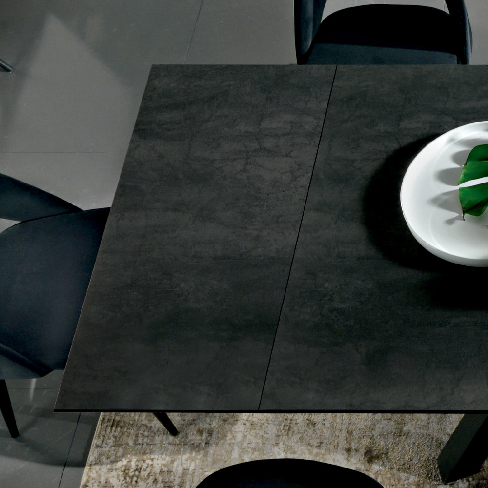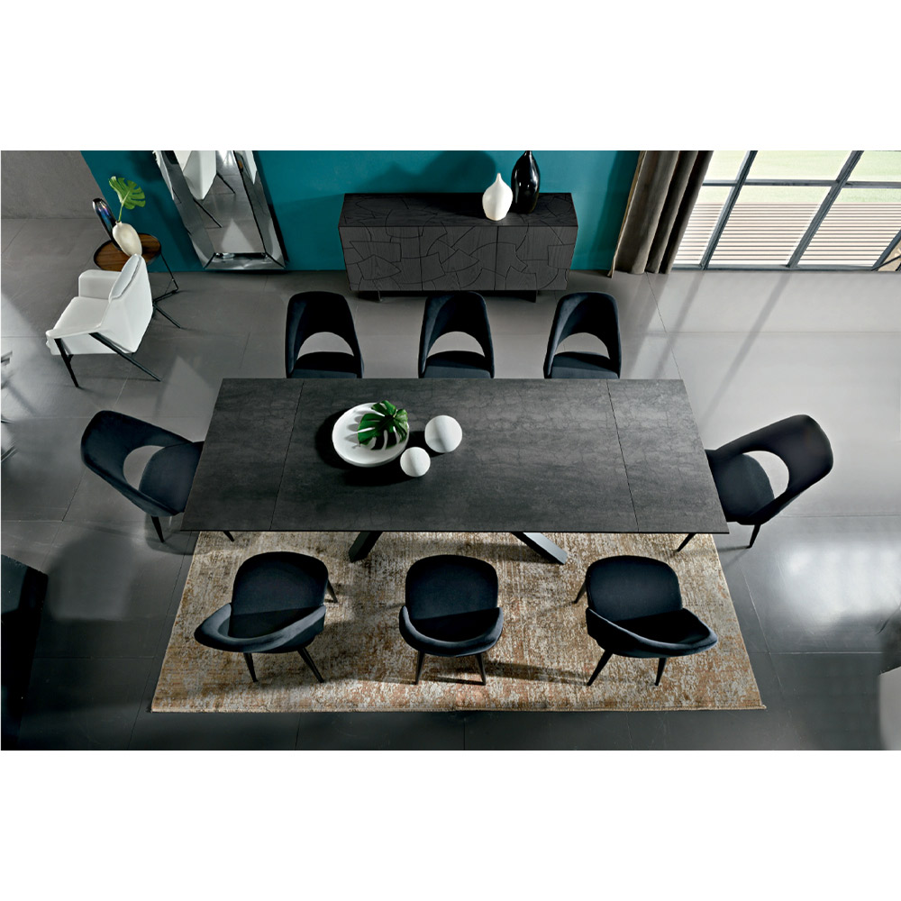 Masa de sufragerie cu blat extensibil din ceramica laminata si baza din otel, articol fin Made in Italy.