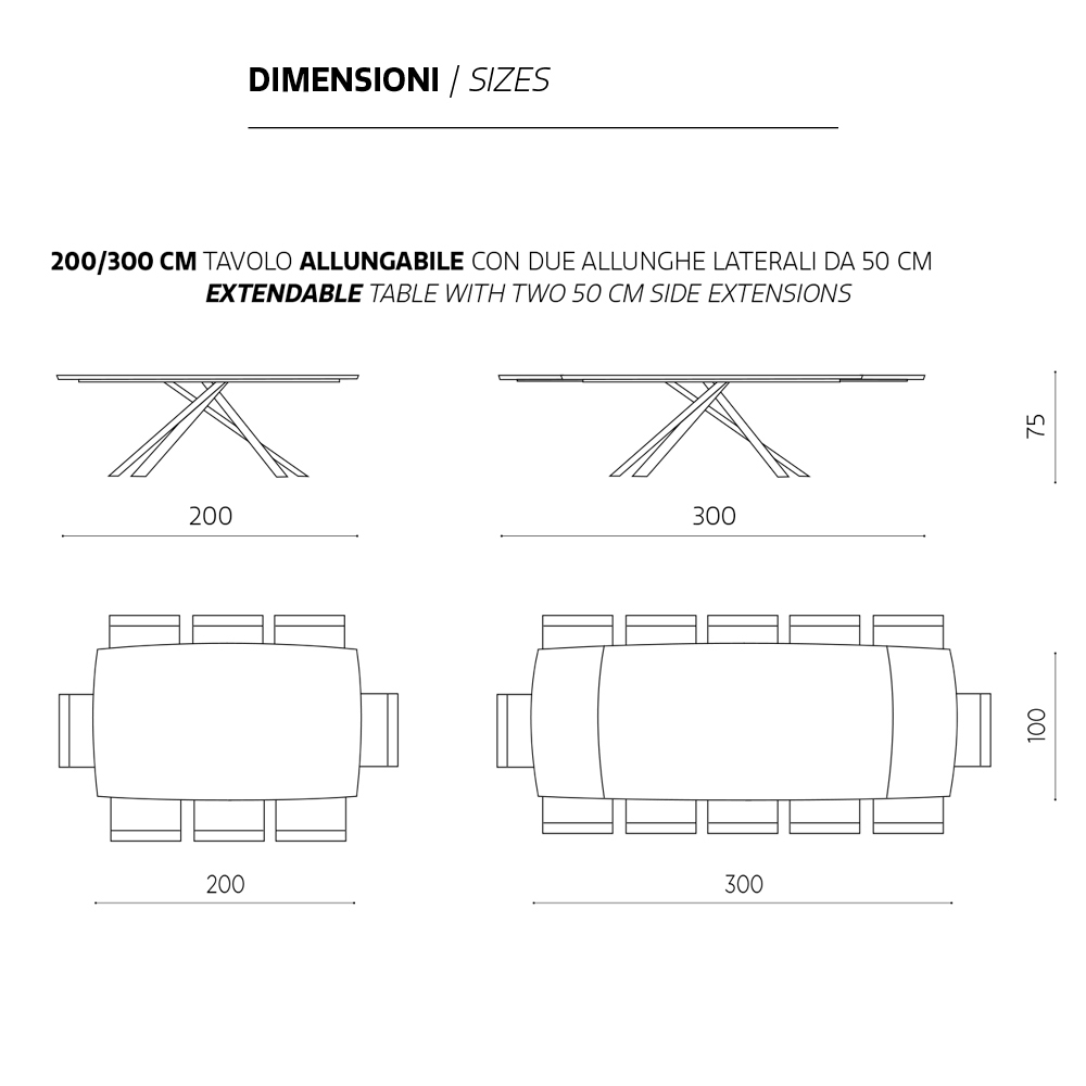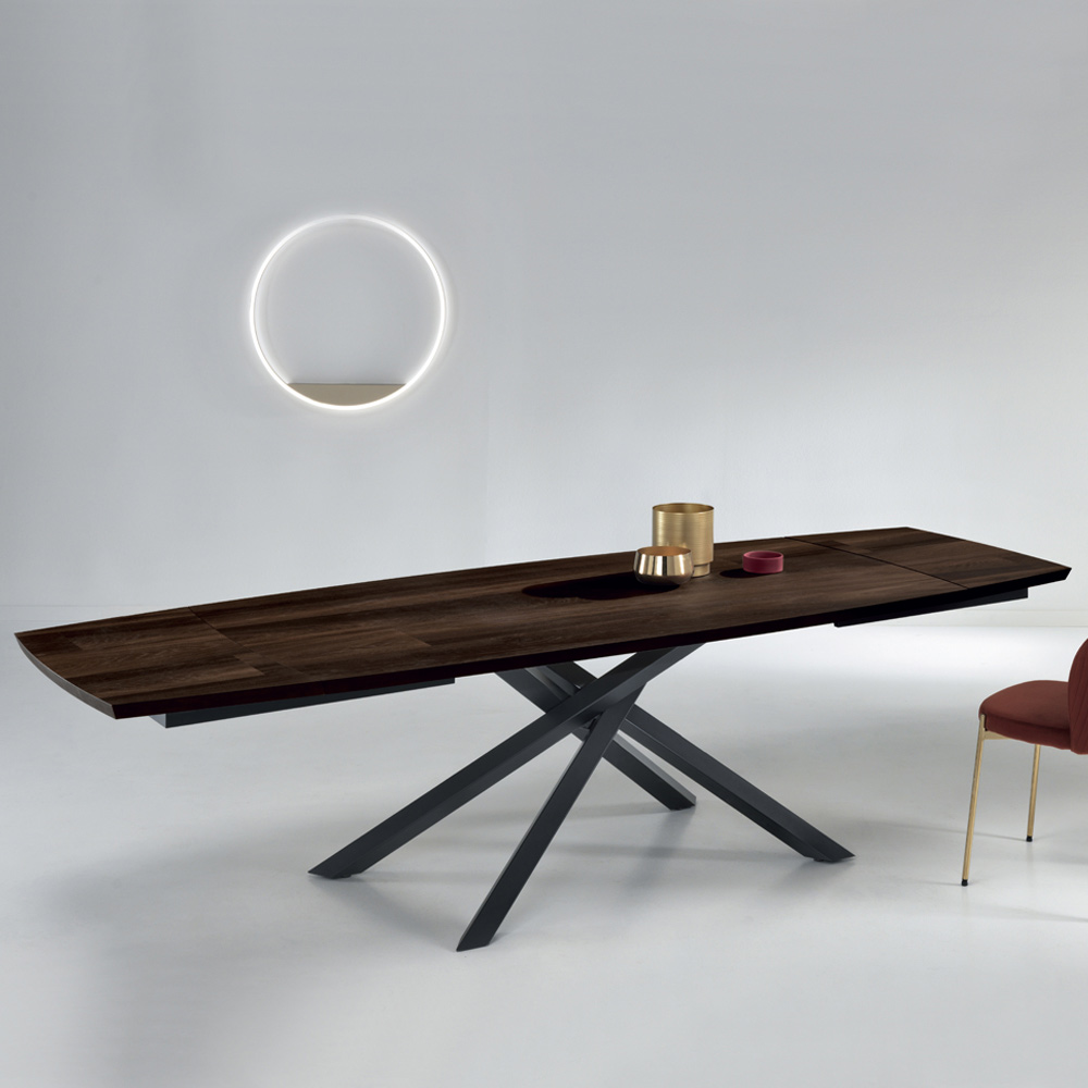 modernitatea bazei metalice dau viață unei soluții de amenajare capabilă să dea o viață nouă spațiilor casnice cu un stil modern, câștigând centrul atenției și devenind astfel adevăratul protagonist al încăperii. . cameră. Particularitatea sa este reprezentată de posibilitatea extinderii blatului până la o lungime maximă de 250 sau 300 cm pentru a putea găzdui confortabil prietenii și rudele în timpul prânzurilor și cinelor cu prietenii.