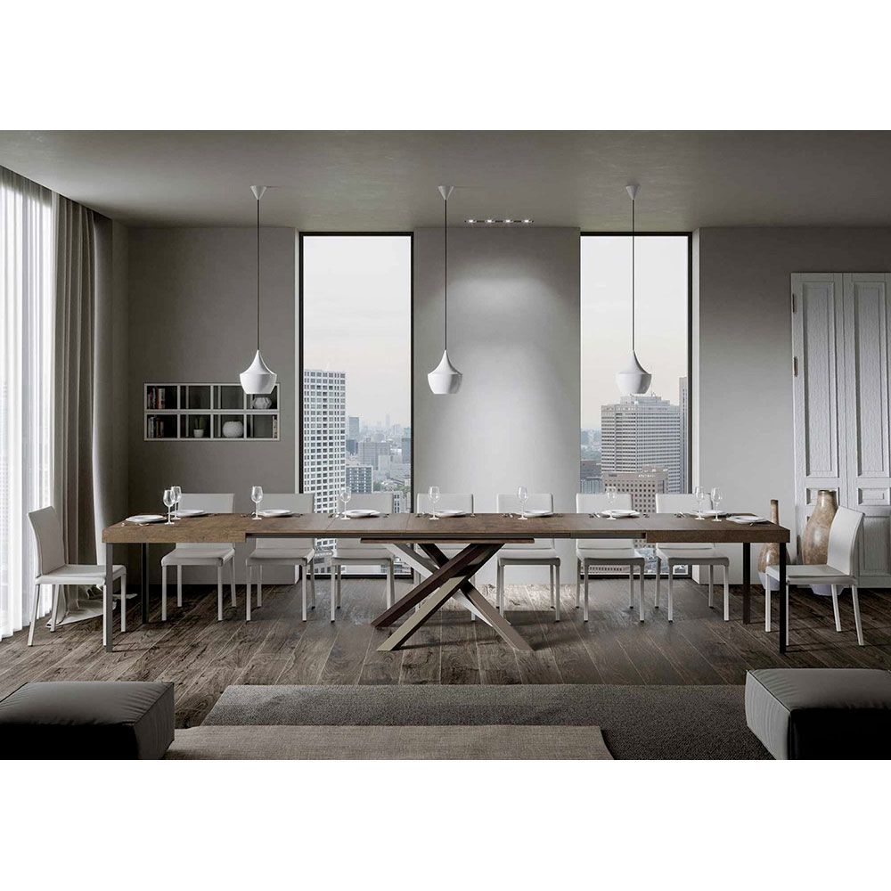 În opțiunea cu 5 extensii, cele 3 extensii rămase trebuie depozitate în altă parte atunci când nu sunt utilizate. Această opțiune è include un suport cu 2 picioare pentru a susține blatul extins.