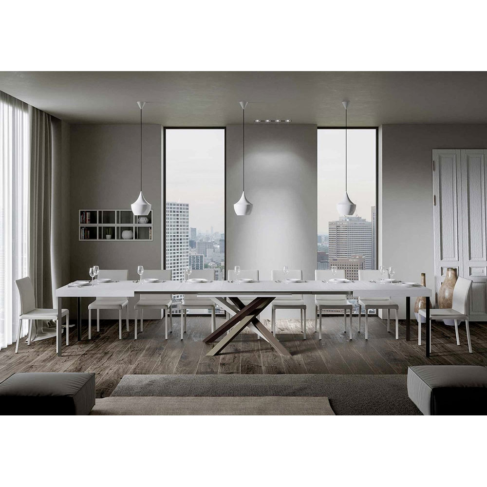 Descoperiți masa extensibilă, o capodoperă a designului modern care se remarcă prin silueta sa unică și funcționalitatea versatilă. Blatul n lemn sporește luminozitatea spațiilor, oferind o suprafață netedă și robustă care invită la utilizarea zilnică. Baza mesei è un adevărat spectacol geometric, cu picioare încrucișate care se întrepătrund într-un joc de culori. Combinația propusă è : Piciorul 1: Alb pur (RAL 9010). Piciorul 2: maro deschis (RAL 8025). Etapa 3: Gri măsliniu (RAL 7002). Piciorul 4: Maro ciocolată (RAL 8017). Culorile RAL sunt opace. Această combinație nu numai că adaugă o notă de vitalitate designului, dar asigură și stabilitatea și rezistența. Mecanismul de extensie a mesei este la fel de simplu pe cât este de ingineresc, permițând acestei piese elegante de mobilier să fie transformată dintr-o masă practică pentru patru persoane într-o zonă confortabilă pentru găzduirea cinei și a adunărilor mai mari.
