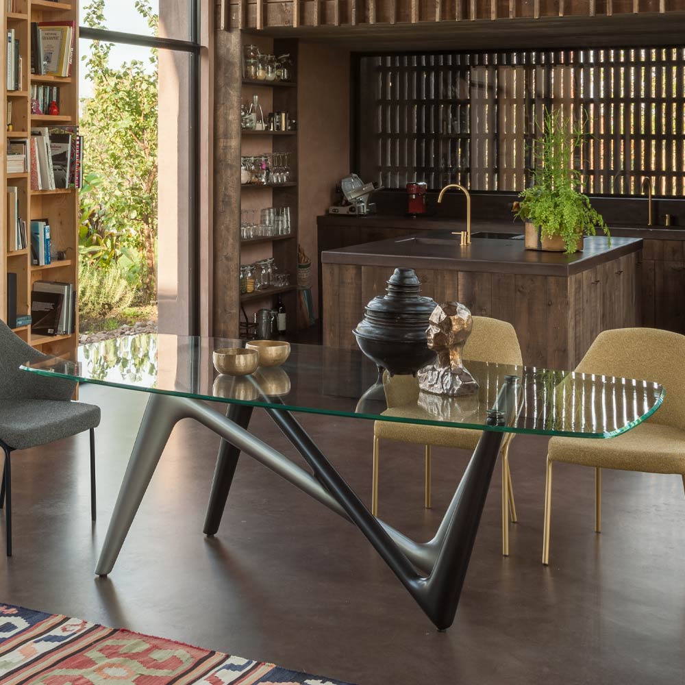 Masa de sufragerie din poliuretan si sticla Made in Italy