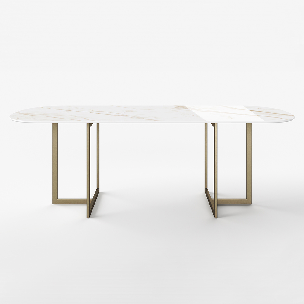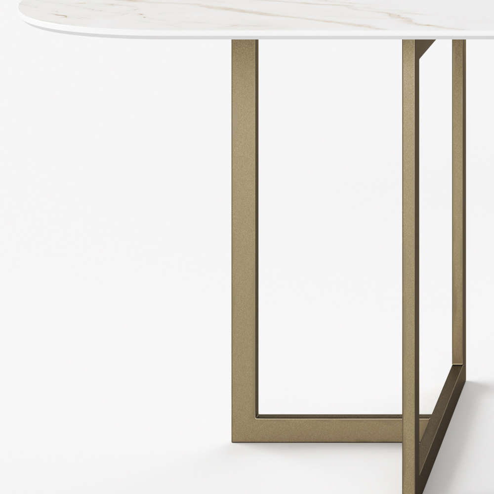 Masa de sufragerie din gresie portelanata cu efect de marmura si metal Made in Italy.