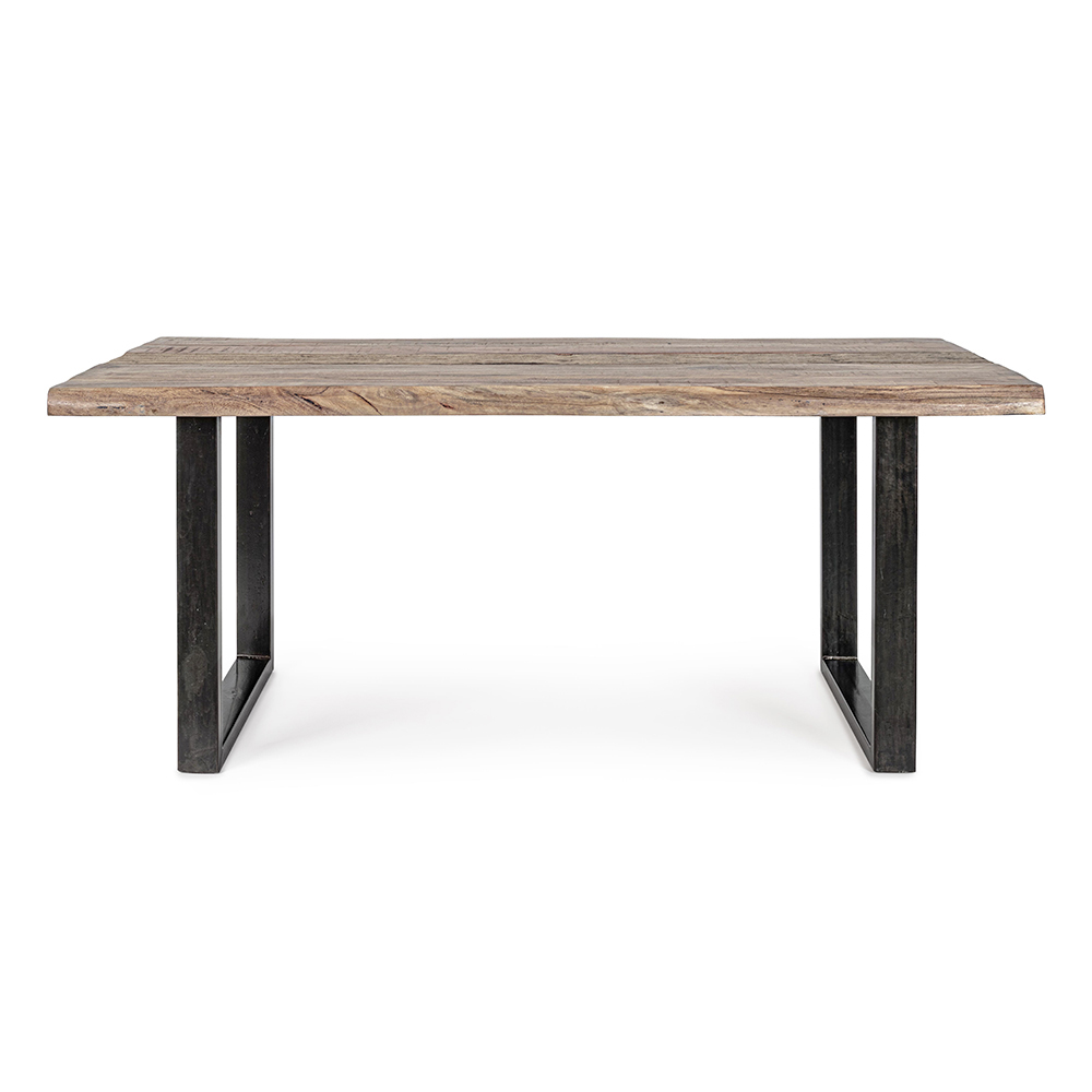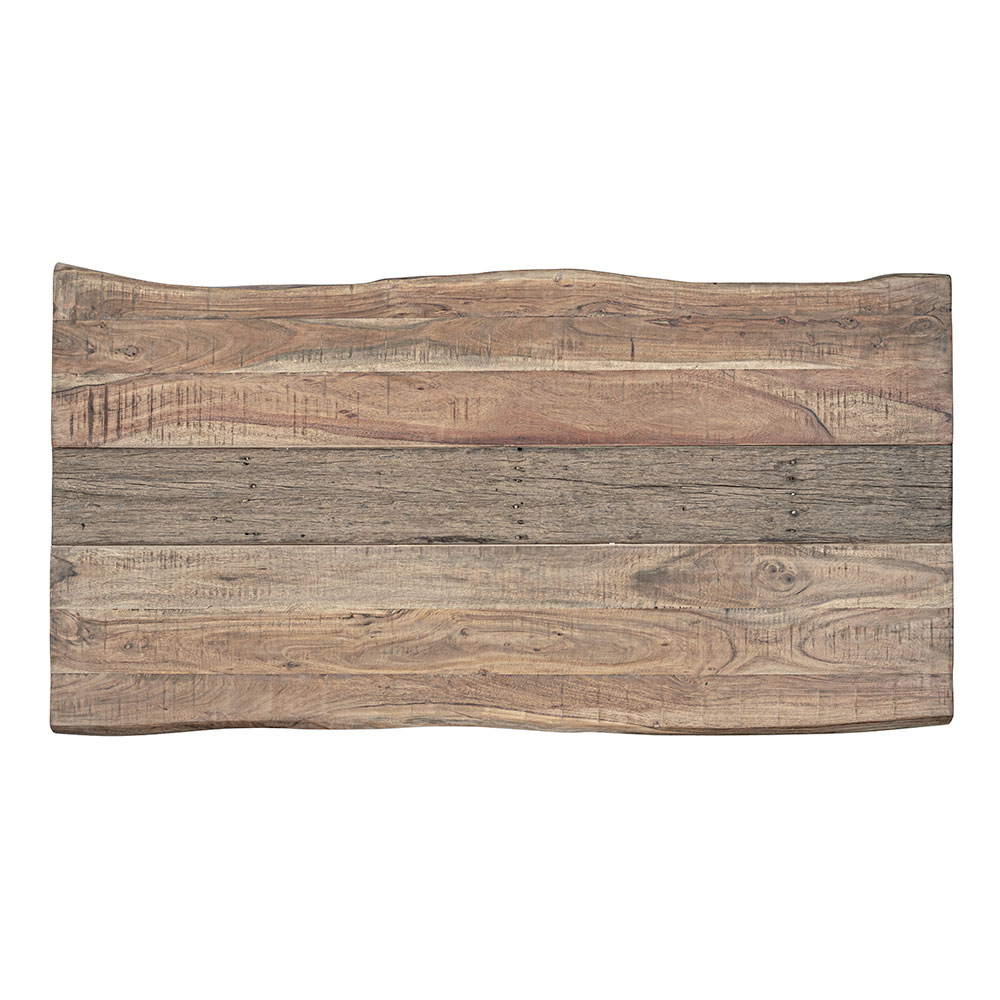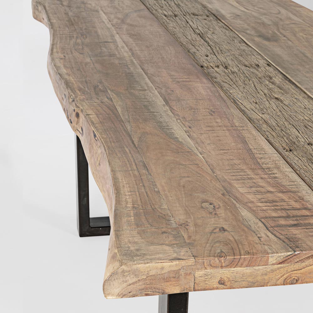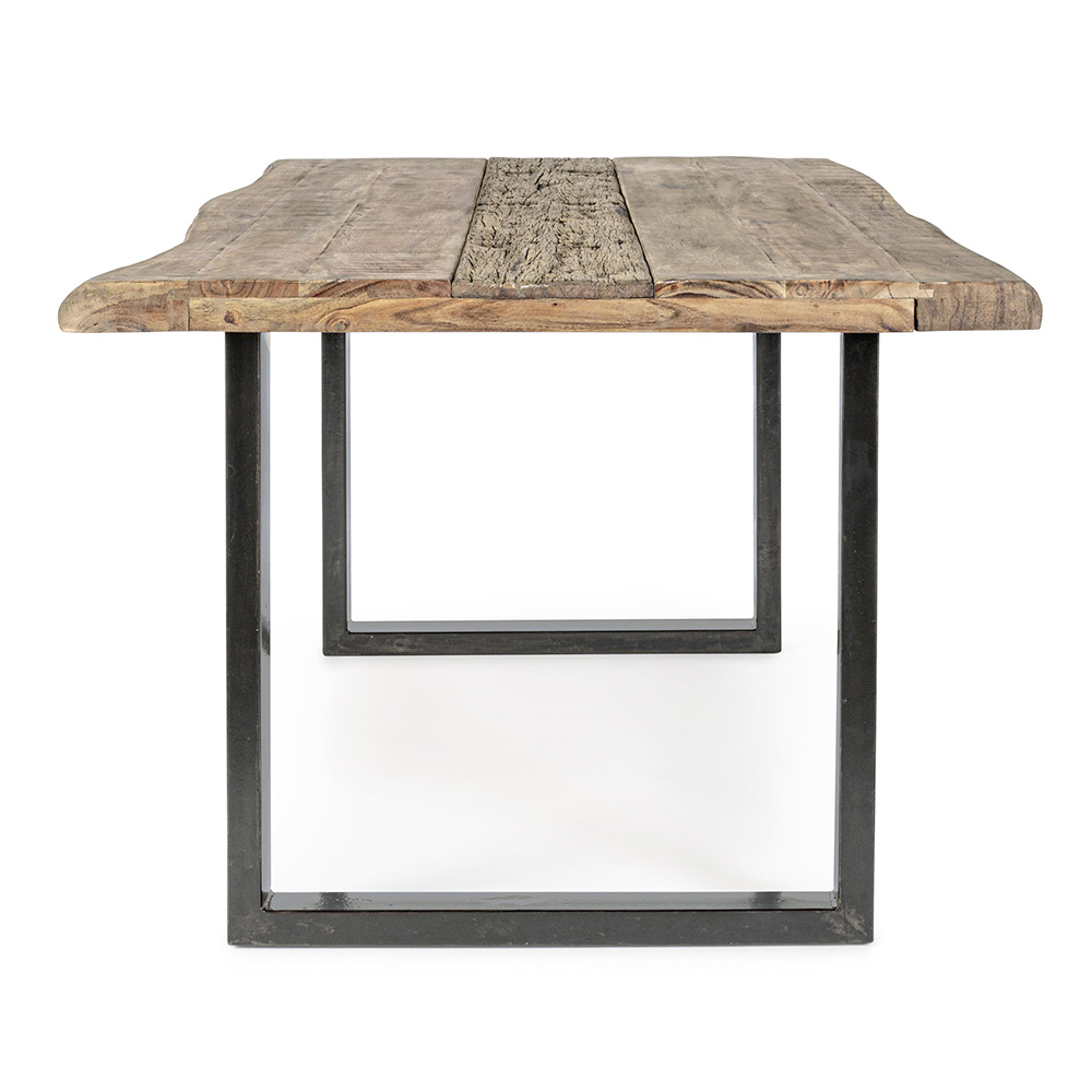 Masa de sufragerie din lemn de salcam cu insert reciclat si baza din otel, 8 persoane.