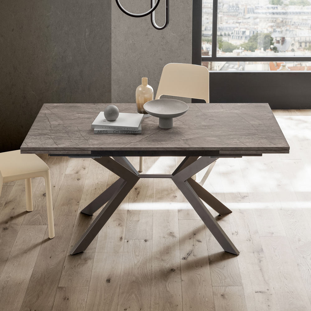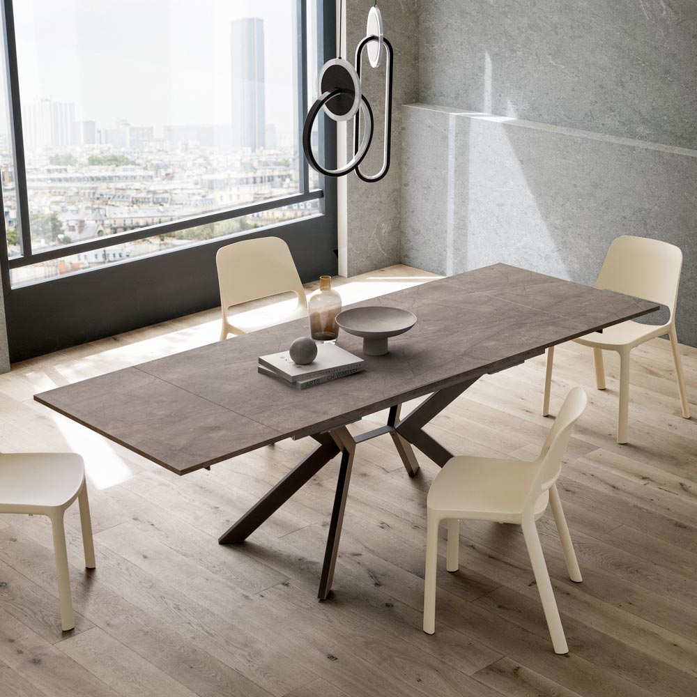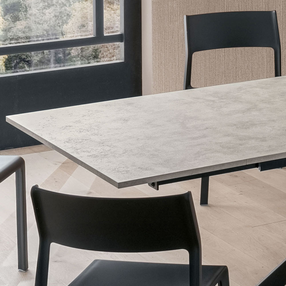 Eleganța și caracterul practic se combină în această masă extensibilă din HPL și metal , concepută pentru cei care își doresc o piesă de mobilier cu un impact vizual puternic, dar extrem de funcțională.