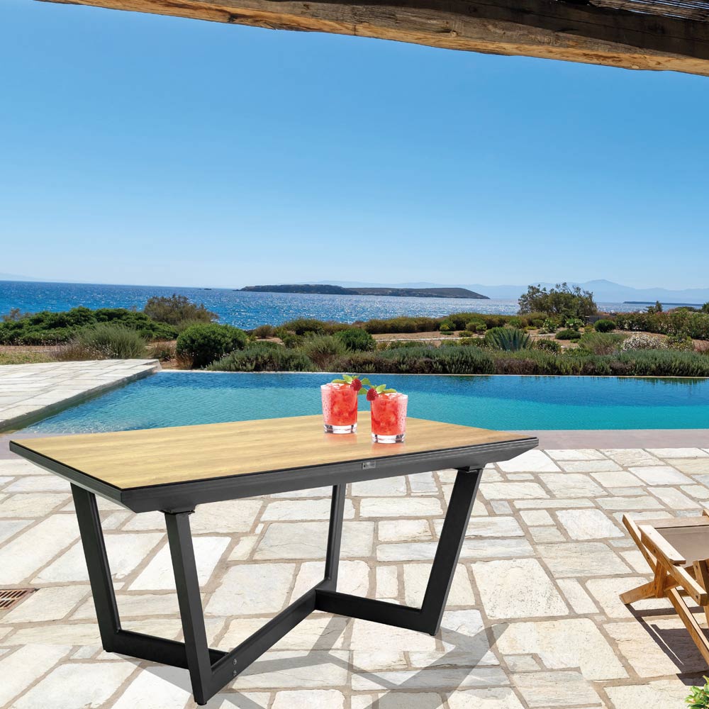 Această masă nu este doar practică prin extensibilitatea sa, ci este și estetică, ideală pentru orice mediu modern care dorește să combine funcționalitatea și stilul. Perfectă pentru mese în aer liber, întâlniri de familie sau pur și simplu pentru a vă bucura de o după-amiază liniștită în aer liber, această masă este alegerea ideală pentru cei care caută eleganță și versatilitate în mobilierul lor de grădină.
