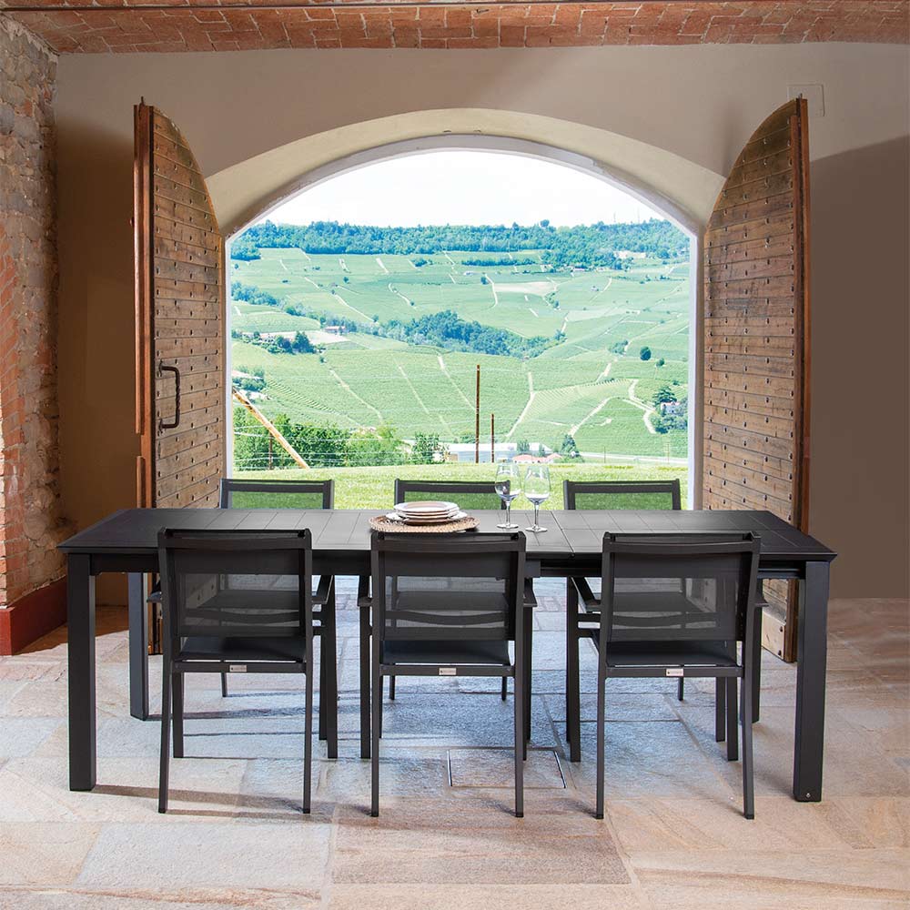 Această masă extensibilă din aluminiu este alegerea ideală pentru cei care caută versatilitate fără a face compromisuri în ceea ce privește stilul și calitatea. Fabricată dintr-un cadru robust din aluminiu , această masă combină durabilitatea cu ușurința, fiind perfectă pentru utilizarea în exterior în orice condiții meteorologice. Finisajul adaugă o notă de eleganță modernă care se va potrivi perfect în orice decor în aer liber, de la grădină la terasă.