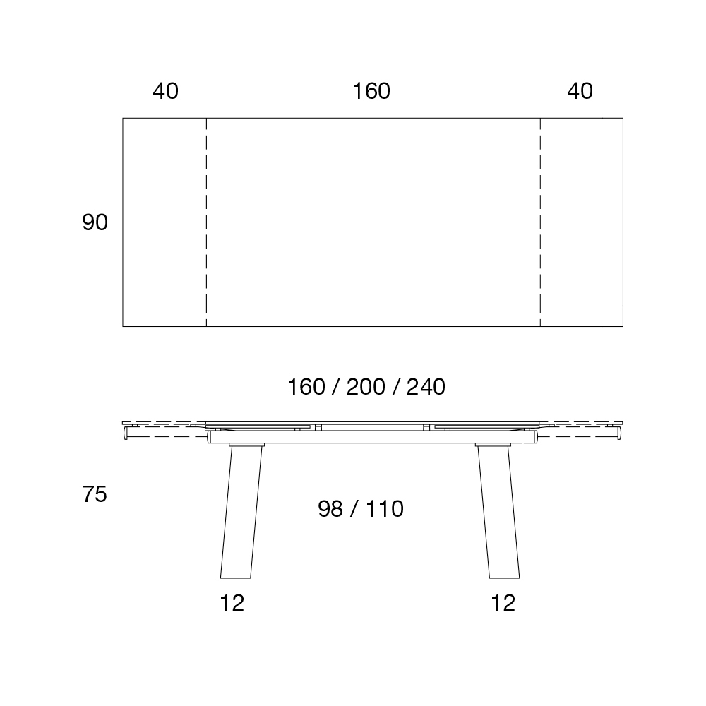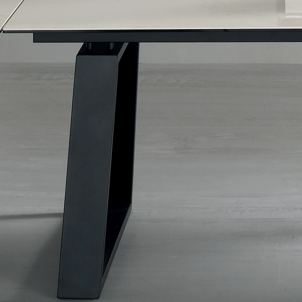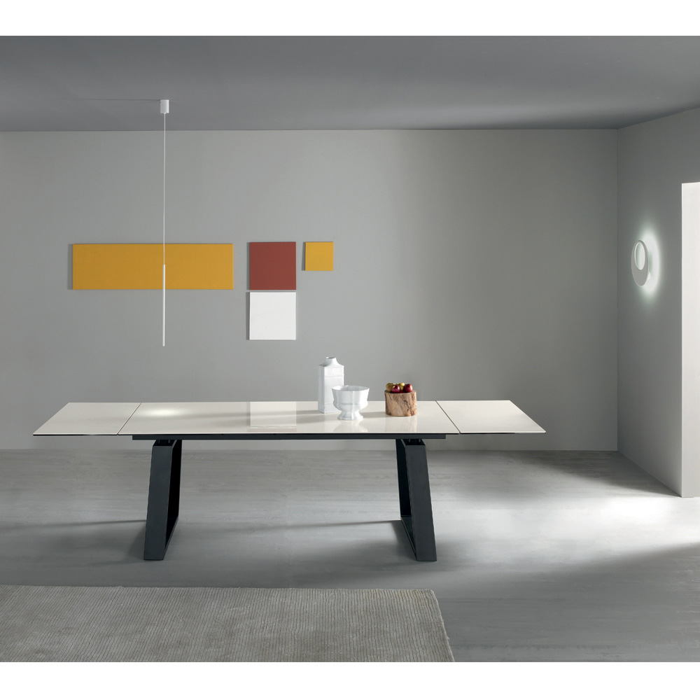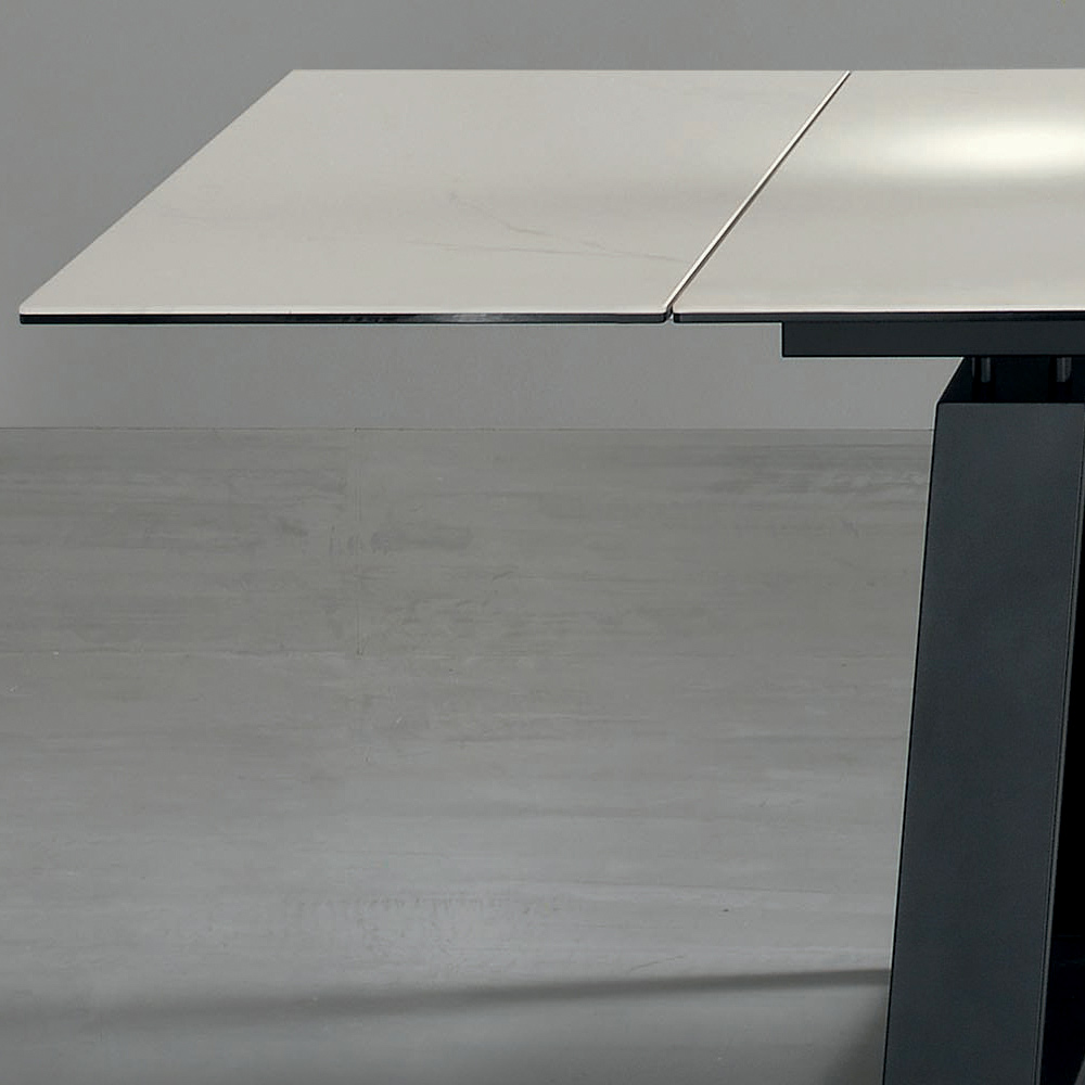 Masa de sufragerie extensibila din ceramica lucioasa si baza metalica, diverse dimensiuni si finisaje fabricate in Italia.