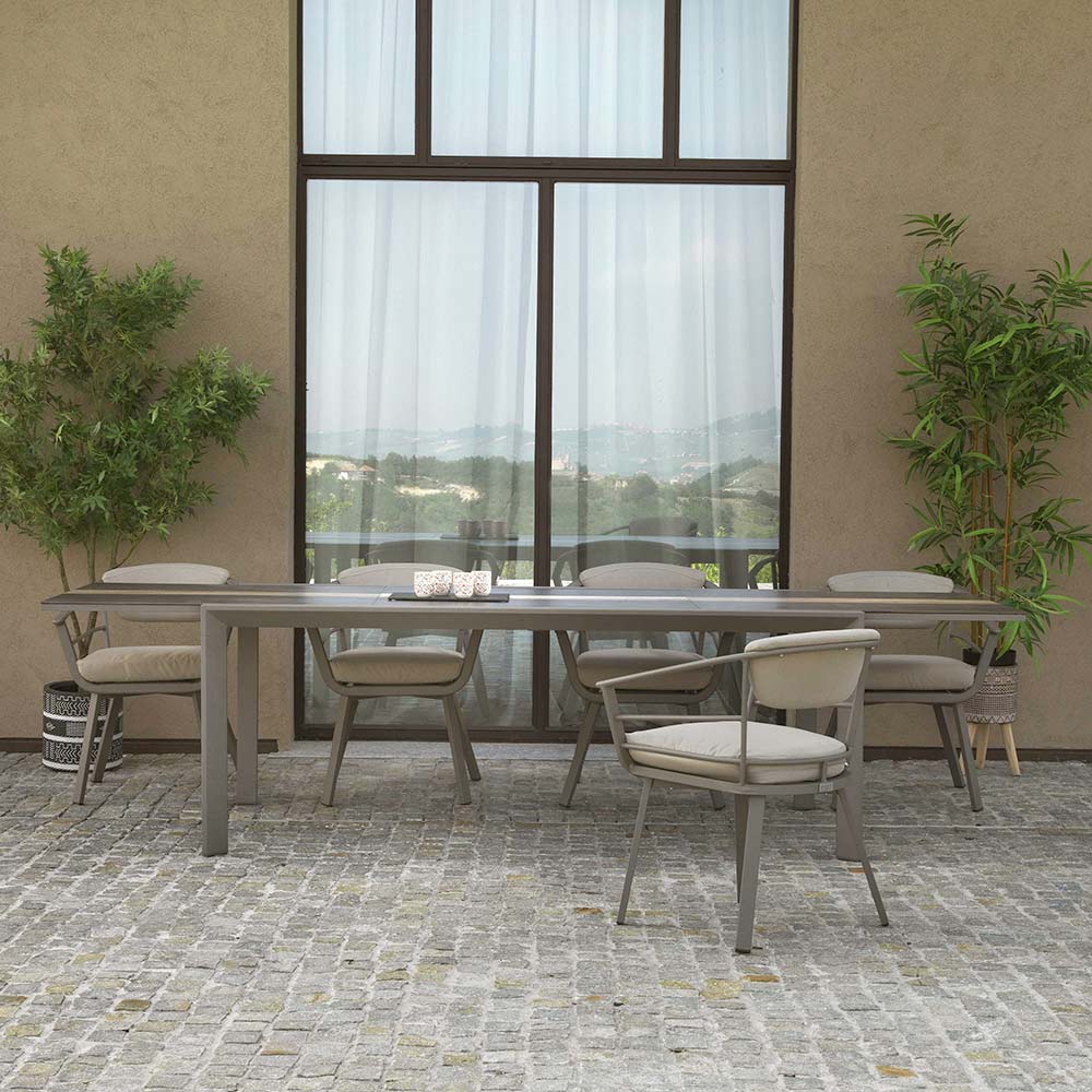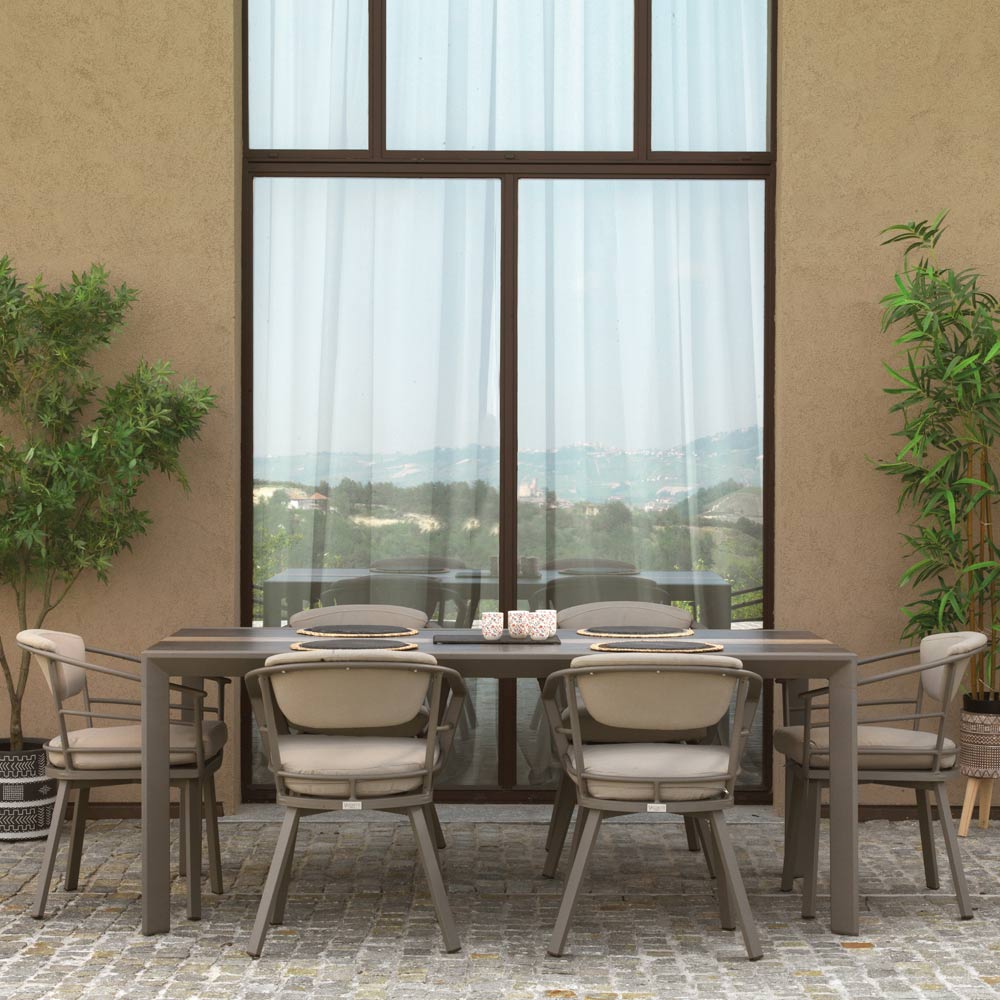 Dispunând de o deschidere glisantă centrală , această masă oferă o flexibilitate unică, permițându-vă să o extindeți cu ușurință atunci când este necesar, ceea ce o face perfectă pentru găzduirea prietenilor și familiei. Suprafața HPL este, de asemenea, faimoasa rezistentă la intemperii și ușor de curățat, asigurând o investiție de lungă durată și ușor de întreținut.