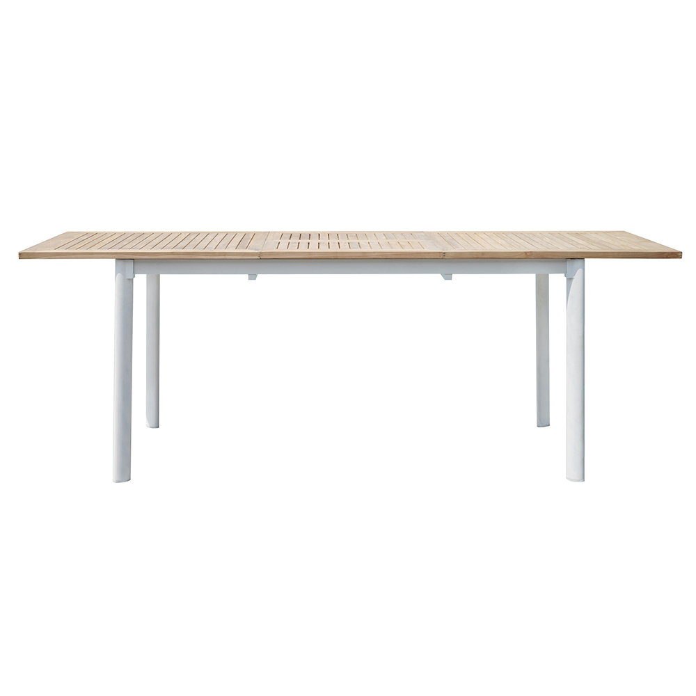 Creșteți-vă spațiul exterior cu această masă extensibilă din lemn de tec și aluminiu . Perfectă pentru grădină, terasă sau terasă, această masă combină designul modern și versatilitatea , oferind o experiență de eleganță și funcționalitate fără compromisuri.