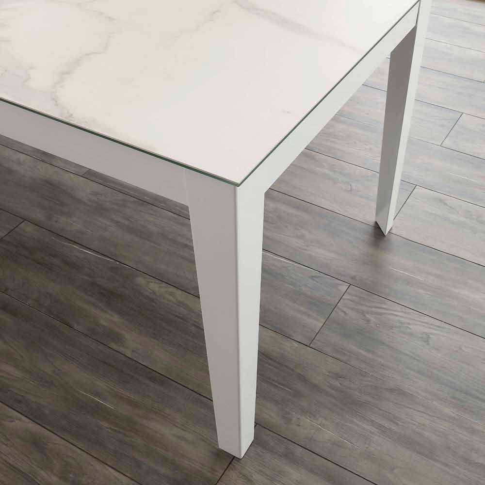 Este realizat cu o structură metalică vopsită disponibilă în două culori diferite și un blat din sticlă ceramică cu sticlă de 8 mm grosime și ceramică de 3 mm grosime.
